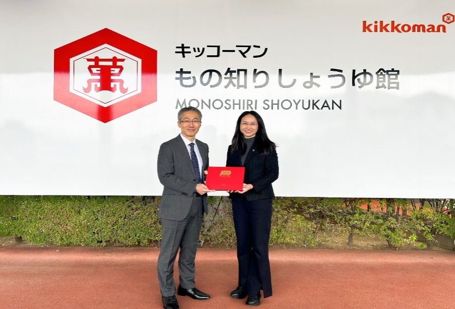 11月15日,访问团一行参观了世界知名调味品企业龟甲万株式会社。该公司自2010年世博会开始,已经连续13年为3044永利集团日语系员工提供奖学金资助。贾小琴副书记代表公司向龟甲万公司海外管理部部长梅本洋先生、大沢绫女士表达了诚挚的感谢,彭明霞副处长代表公司基金会赠送了纪念品,双方就进一步深化友好合作关系,助力中日民间教育交流达成共识。