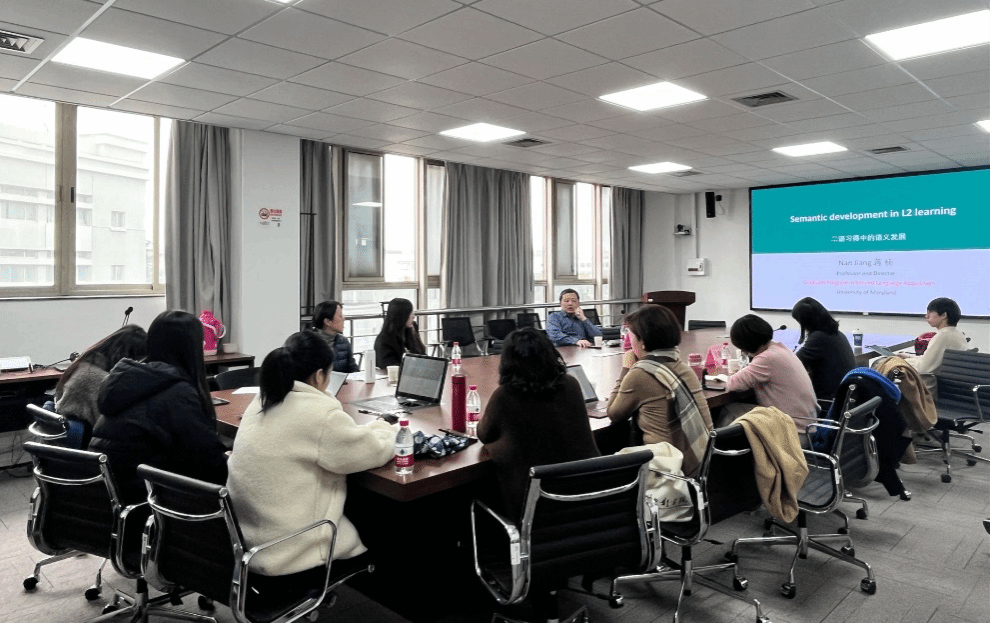 12月13日下午,马里兰大学二语习得专业主任蒋楠教授为公司师生做了一场题为“二语习得中的语义发展研究”的专题讲座。本次讲座由英语系主任张建琴主持,公司多位专业教师及本科、研究生同学参与了本次讲座。