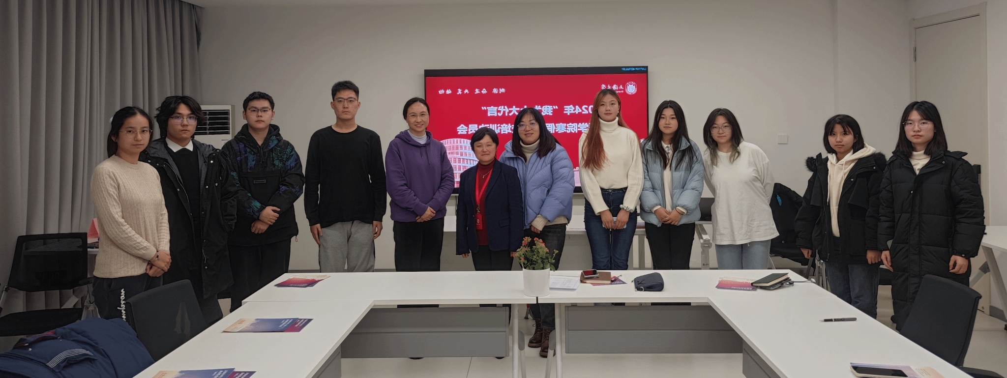 2023年12月22日下午,3044永利集团在宝山校区C104召开2024年“我为上大代言”寒假回母校行前培训动员会,吉林招宣组组长、公司党委书记吴蔚,吉林招宣组副组长、公司党委副书记、副经理贾小琴,永利集团招生与就业处宋颂,吉林招宣组联络员崔一冰及志愿者同学们共同参加本次培训动员会。