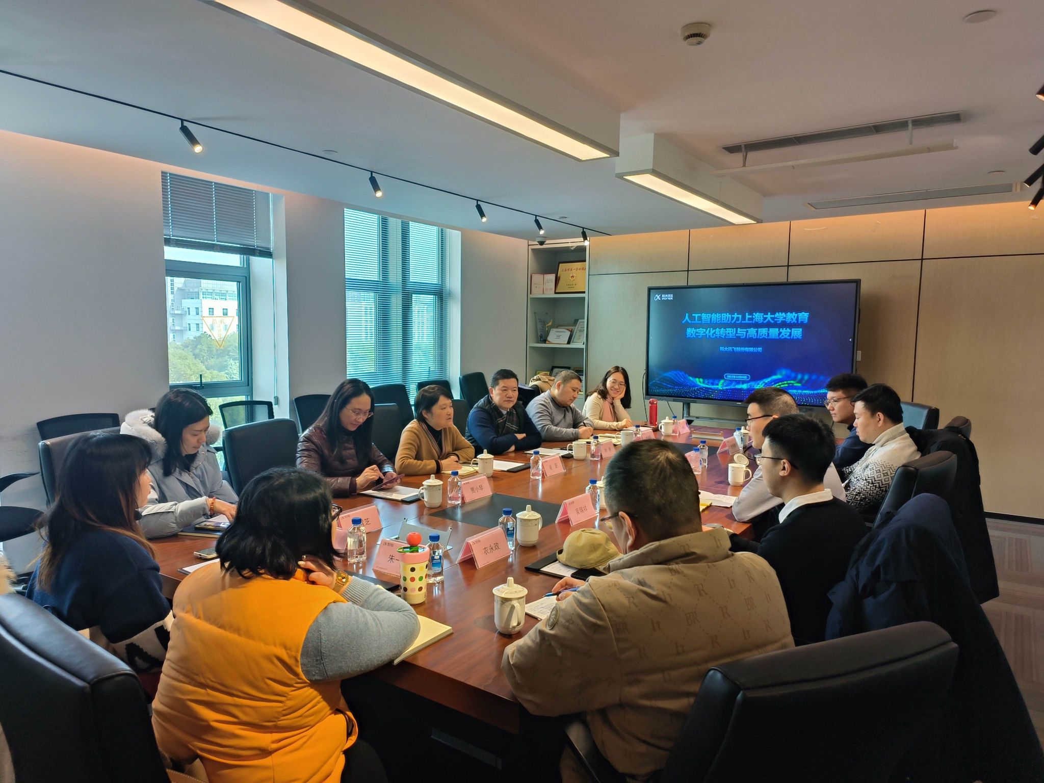 随后,调研团队与科大讯飞(上海)科技有限公司主要负责人围绕党支部共建新模式以及人工智能在大学英语教学改革中的应用前景展开了深入的探讨与交流。