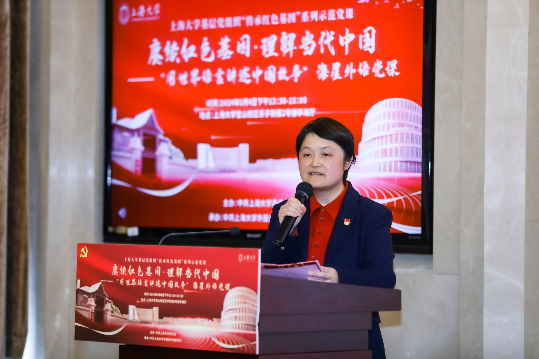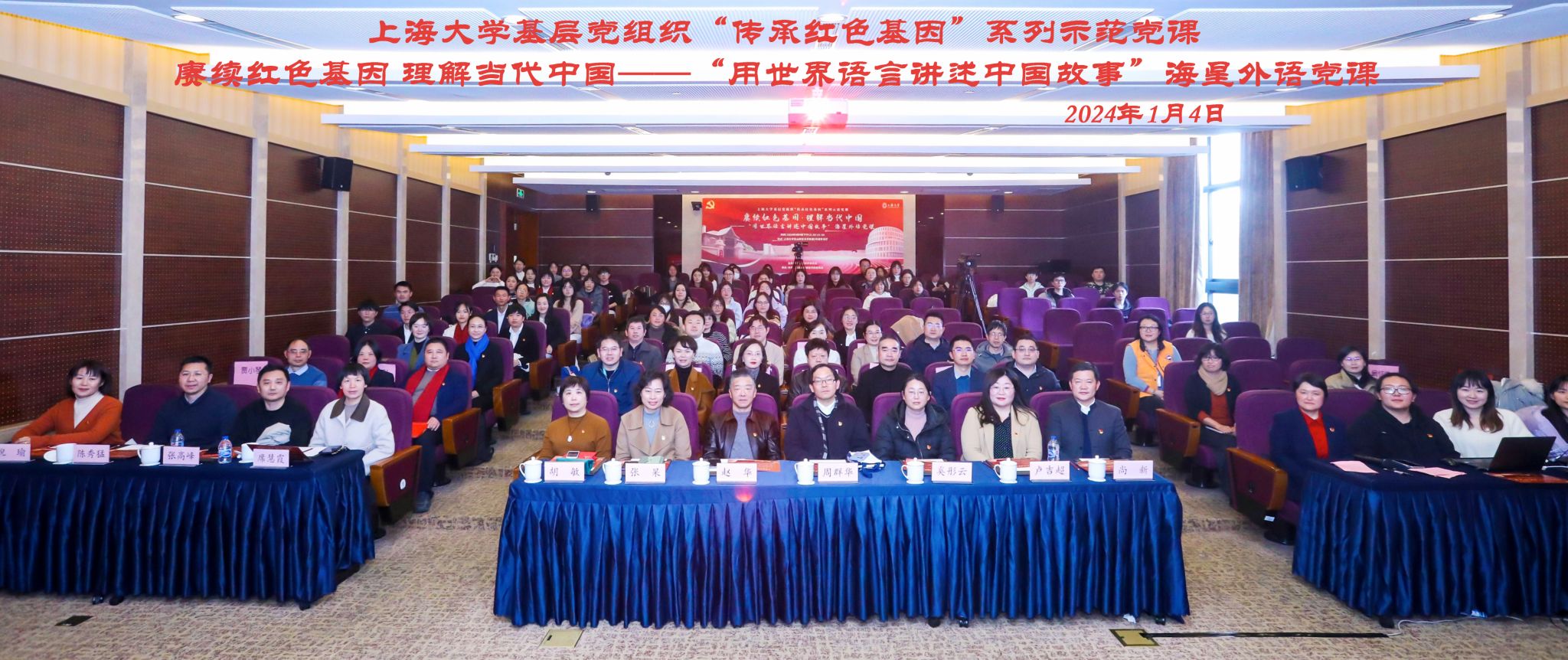 为深入学习贯彻党的二十大精神,坚持不懈用习近平新时代中国特色社会主义思想凝心铸魂,2024年1月4日下午,永利集团基层党组织“传承红色基因”系列示范党课:赓续红色基因,理解当代中国——“用世界语言讲述中国故事”海星外语党课在永利集团宝山校区乐乎新楼学海厅举行。
