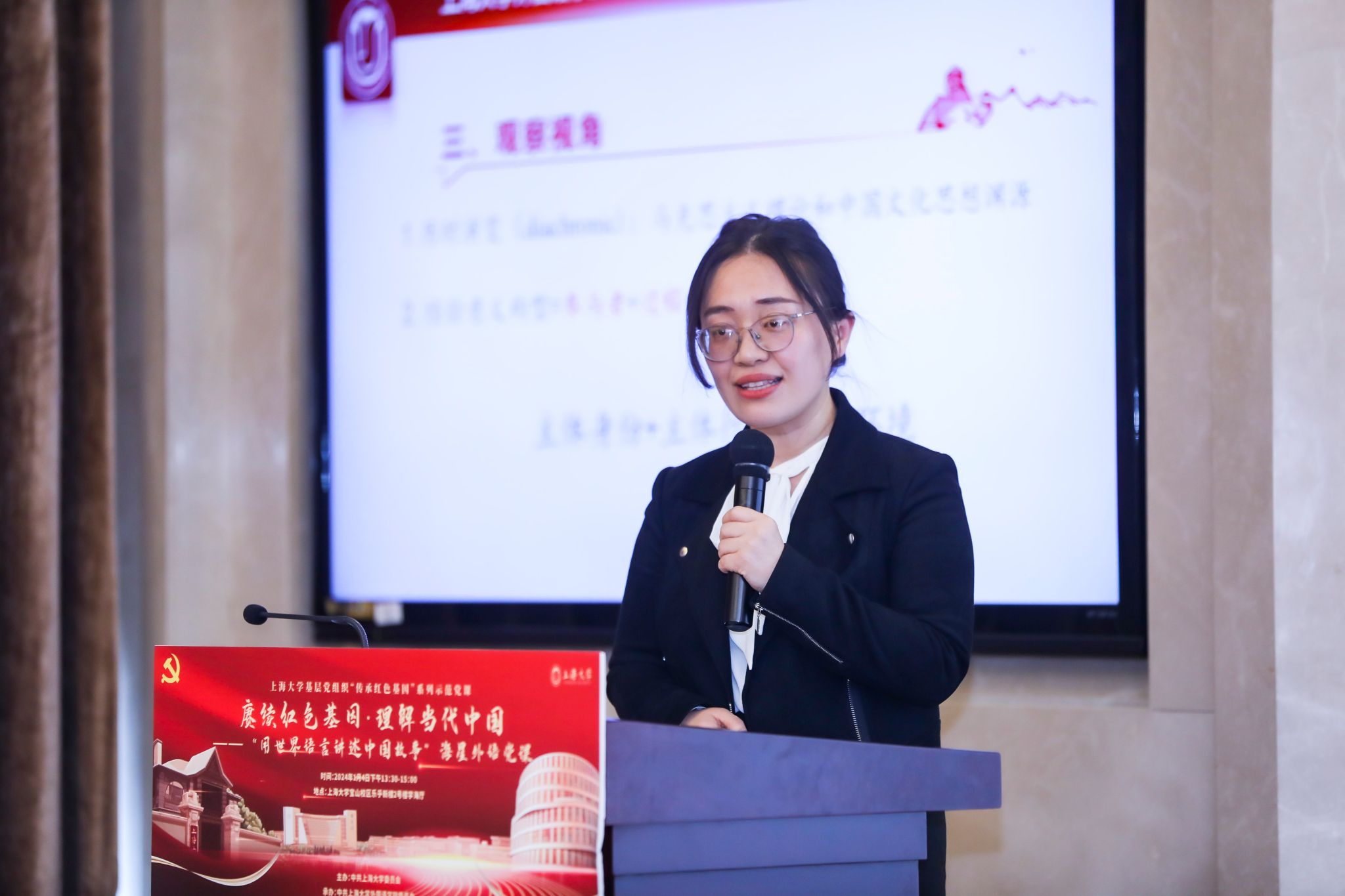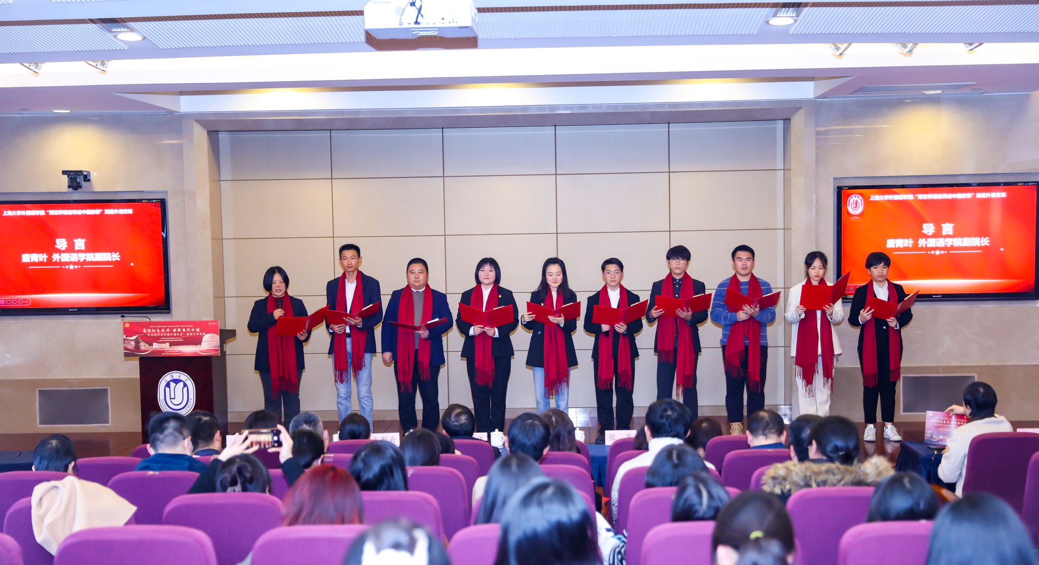 今天的示范党课非常成功,“传承”篇中我们看到了方梦之老先生孜孜以求、严谨求实的翻译家精神,朱音尔老师的分享也让我们看到了学术薪火相传,外院年轻一代学者在传扬上大故事中的奉献和成长;“传播”篇中于梅欣老师结合语料库研究为我们讲授了“共同富裕”理念的话语逻辑证成,让我们对这一理念的演变有了更深入的理解,焦舒曼老师和员工们对人类命运共同体理念的讨论让我们看到当代青年在中西文明互鉴中的担当和作为;“传扬”篇中尚新教授对党的二十大报告中中华优秀传统文化的解读,也给我们用世界语言讲述中国故事带来了新的启发。最后的多语种诵读《共产党宣言》节目非常精彩,同时也提醒我们每位党员要牢记使命,不忘初心。整场党课形式活泼多样,师生们的分享真诚感人,为2024年的党员教育活动开了个好头!