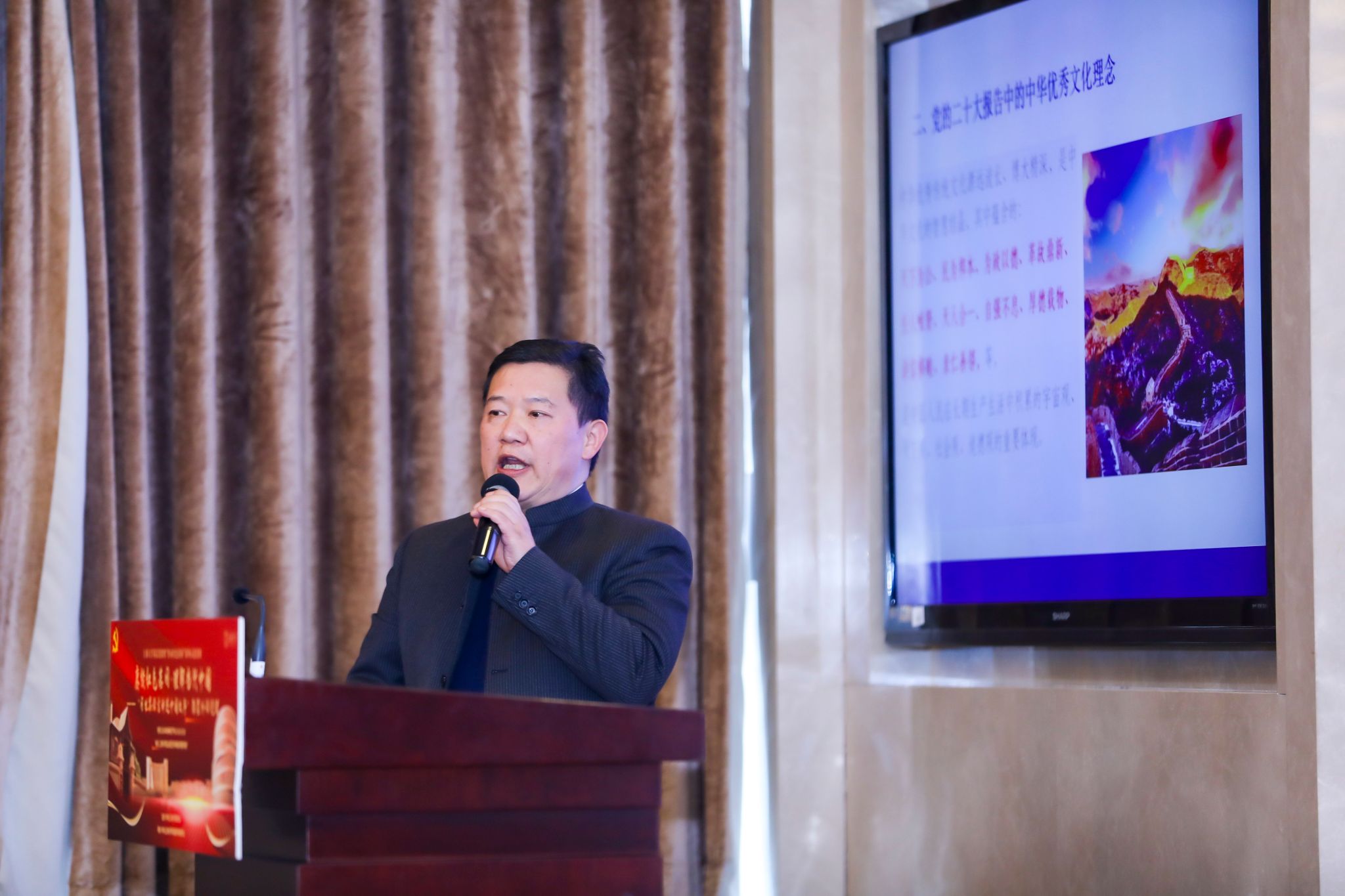 在第三篇章“传扬——融通中外、文明互鉴,用世界语言讲述中国故事”中,公司党委副书记、经理尚新教授以《党的二十大报告中的中华传统优秀文化理念解读》为题,解读了党的二十大报告中中华优秀传统文化的十个成语,其中蕴含着丰富的治国理政思想智慧,充分体现了中国人民的宇宙观、天下观、社会观、道德观,探究了中华文明讲仁爱、重民本、守诚信、崇正义、尚和合、求大同的精神特质和发展形态。尚经理指出,修身齐家治国平天下、治国理政和天下大治深刻体现了中华传统文化中的精髓和核心思想,我们要充分挖掘和弘扬中国式现代化道路的深厚文化底蕴,从中华优秀传统文化中寻找源头活水,向世界展现中国的独特智慧,彰显历史自信和文化自信。