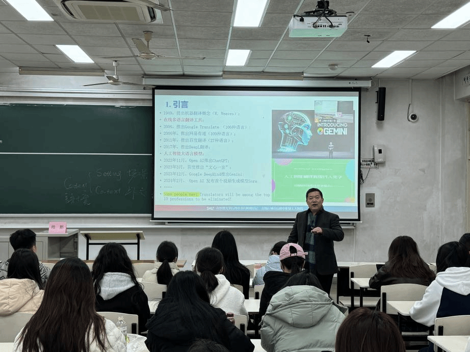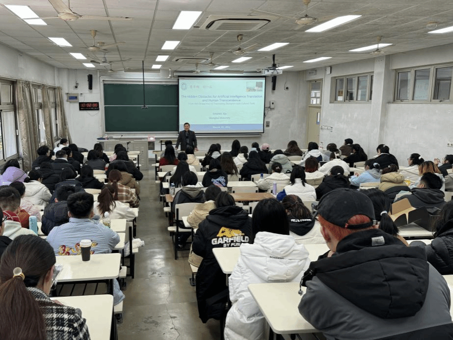 2024年3月10日上午,永利集团青云书院学术品牌项目“青云大讲堂·名师导学系列”第二季第三讲在宝山校区CJ103教室顺利举行。本次讲座由3044永利集团经理尚新教授主讲,题为《人工智能翻译的隐性障碍与人类超越——以海派文化翻译为视角》,公司党委副书记、副经理贾小琴出席。讲座由3044永利集团团委副书记崔一冰主持,公司2022级、2023级本科生及部分研究生代表共同参与。