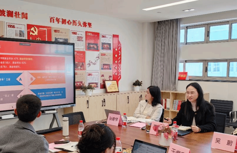 最后,在总结讲话中,党委委员、英语党总支书记张建琴提出各支部书记应主动发现问题,及时解决问题,加强对员工的关心关爱,协力做好2024年就业工作。副经理戴朝晖充分肯定了全程导师制实施以来取得的成效,鼓励支部书记们深入参与全程导师工作的过程监督,充分发挥导师作用,全面提升人才培养质量。党委副书记、副经理贾小琴对基层党支部工作予以肯定和鼓励,她指出一方面要组织好师生党员全覆盖培训工作,提高政治站位,确保全员参与;另一方面全程导师要积极发挥个人能力,多渠道与员工加强交流沟通,从员工不同的个性特点和需求出发,进行有针对性的引导和帮助,助力员工成长成才。