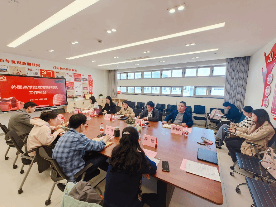 为进一步贯彻落实公司党群工作例会精神,增强基层党组织政治功能和组织功能,3月29日下午,公司党委在宝山校区C412会议室召开党支部书记工作例会,公司党委书记吴蔚,党委副书记、经理尚新,党委副书记、副经理贾小琴,副经理戴朝晖,党委委员、英语党总支书记张建琴,全体师生党支部书记等参加会议。本次会议由吴蔚书记主持。