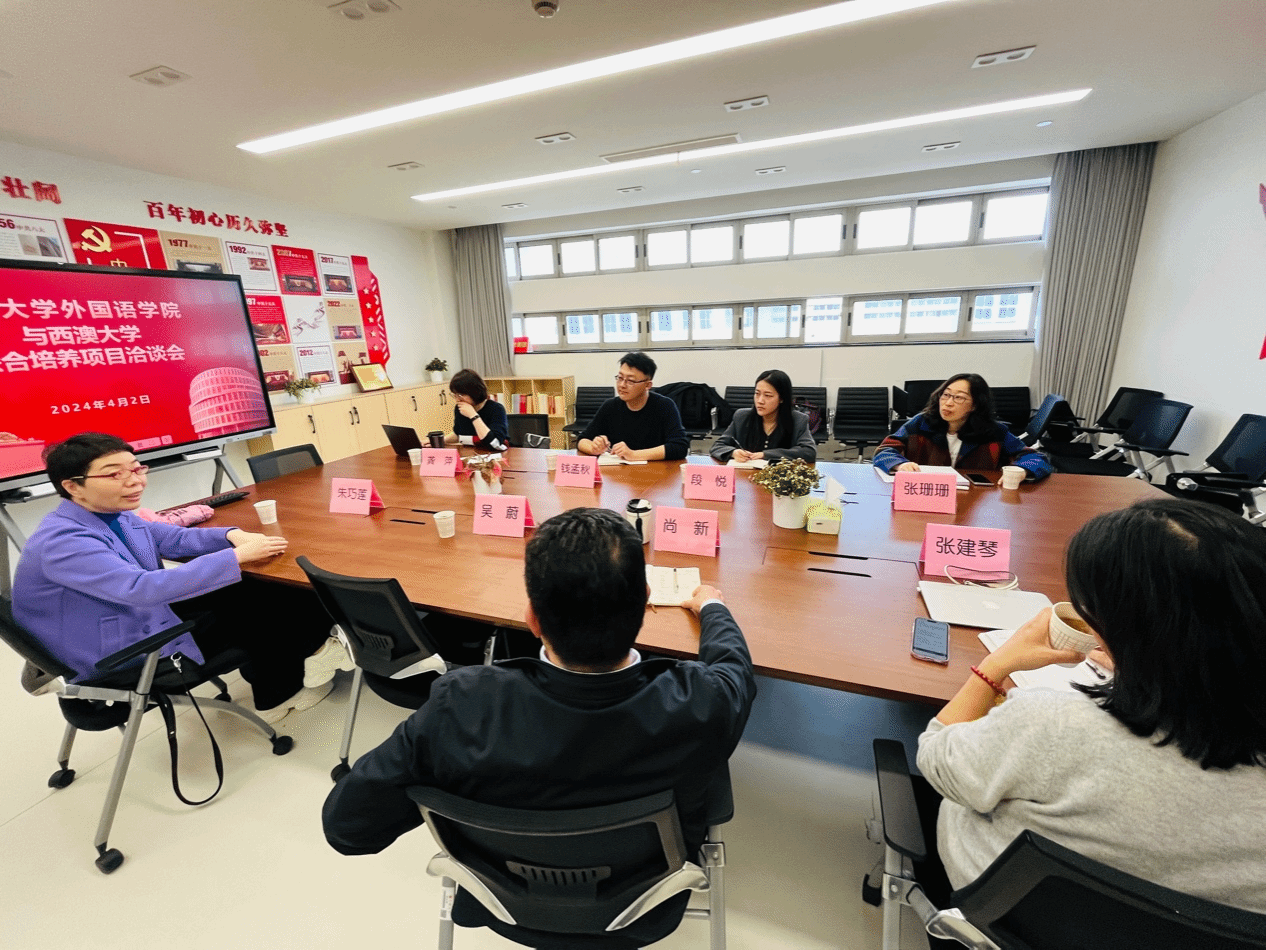 3044永利集团为进一步加强员工的国际化培养,促进公司国际化工作的开展,继3月27日,永利集团党委副书记、副董事长胡大伟会见西澳大学国际事务协理副董事长詹尼弗·赫维尔(Jennifer Anne Howell)一行,双方共同签署生物医药科学硕士的联合培养协议后,于4月2日与西澳大学方代表钱孟秋老师、段悦老师就本科及研究生联合培养项目的拟定与实施进行了洽谈。出席会议的领导老师有公司党委书记吴蔚,党委副书记、经理尚新,MTI教育中心主任朱巧莲,英语系主任张建琴,副主任龚萍、张珊珊。会议由尚新经理主持。