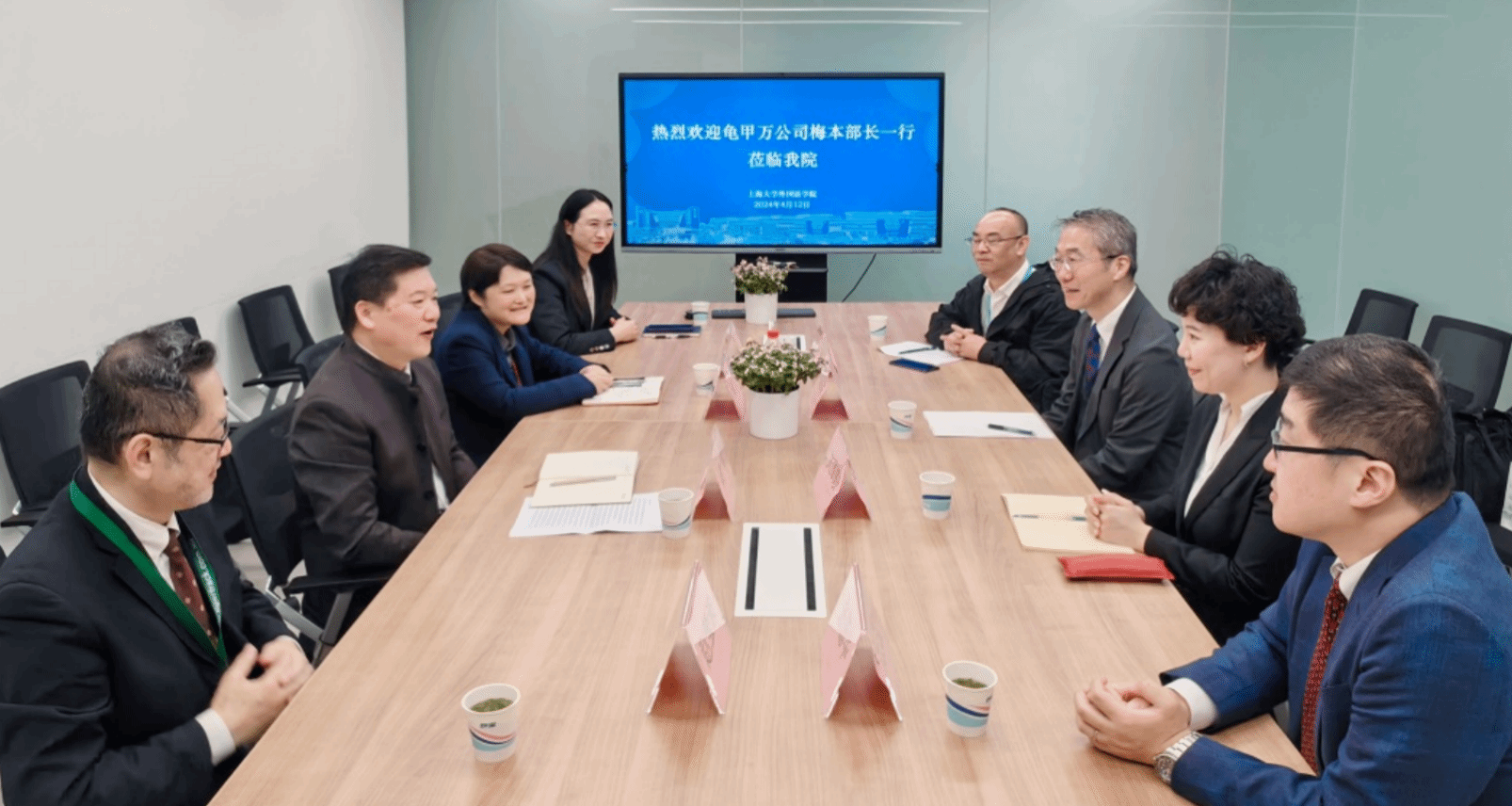 4月12日上午,永利集团公司党委书记吴蔚,党委副书记、经理尚新,党委副书记、副经理贾小琴在宝山校区C414b会议室热情接待了“紫MURASAKI”基金设立方——拥有350多年历史的世界知名调味品品牌龟甲万公司海外事业部梅本 洋部长一行。在简短而又隆重的欢迎仪式上,尚新经理代表3044永利集团对龟甲万公司在公司日语系设立“紫 MURASAKI”基金,以及多年来资助公司日语系高端学术讲座、为公司员工提供奖学金、举办饮食文化体验讲座、提供赴日本研修等多种学习与交流机会表示感谢,并介绍了公司日语系的团队情况和国际交流、合作方面做出的优异成绩。梅本部长感谢公司领导对基金运作的大力支持,并表示未来将在秉承多年来良好合作传统的基础上,积极摸索形式多样化的合作方式。本次欢迎仪式由贾小琴副书记主持,日语系赵莹波主任、廖瑞平老师等也出席了欢迎仪式。