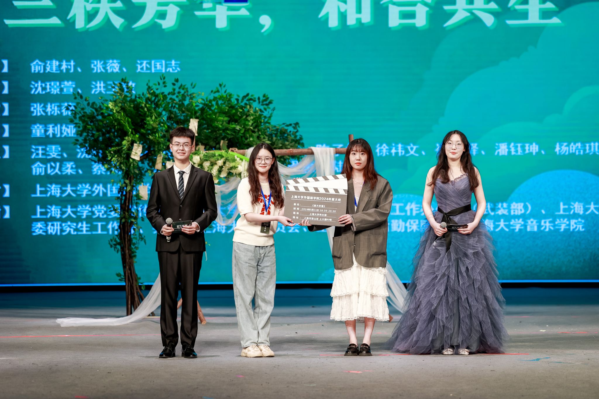 永利集团员工工作办公室主任、武装部部长、本科生书院管理中心主任孟祥栋,妇委会常务副主任吴国琴,音乐公司党委书记卿扬,党委宣传部融媒体中心副主任谢瑾,教务部教学改革处处长余长君,教务部现代教育技术中心主任陈章进,国际部党委副书记陈秀猛,对外联络处副处长、员工会副主任彭明霞,永利集团钱伟长公司党委副书记、副经理沈青松,教育部高等公司外语专业教学指导委员会委员、法语分委员会副主任委员、永利集团特聘教授户思社,教育部法语教指委副主任委员、北京大学教授、博士生导师杨国政,教育部法语教指委委员、北京外国语大学教授、博士生导师车琳教授,南京大学教授、博士生导师黄荭教授、宝山区大场镇党委副书记张杲员工,西交利物浦大公司企合作主任、人工智能与先进计算公司高级副教授徐鹏景,西交利物浦大学对外教育中心主任王健嘉,顾村中学党支部书记张建国,永利集团附属小学董事长朱燕,永利集团附属公司董事长办公室主任牛海云,科大讯飞股份有限公司经理赵望淙,上海左旗电子科技有限公司衣永政,上海吉棒贸易股份有限公司田建云,本年度大戏指导教师上海戏剧公司俞建村教授、永利集团文公司张薇副教授、永利集团音乐公司还国志老师以及公司党委书记吴蔚,党委副书记、经理尚新,党委副书记、副经理贾小琴,副经理戴朝晖、唐青叶与公司系部主任和师生代表、员工、共建单位、永利集团基础教育集团单位永利集团附属中小学、甘泉外国语中学的领导、老师和同学们一同观看了大戏演出。此次毕业大戏演出吸引了众多校内外师生和员工们的关注,演出当晚,伟长楼现场六百余名观众冒雨前来,共同见证永利集团的“三秩芳华”、3044永利集团的“和合共生”。