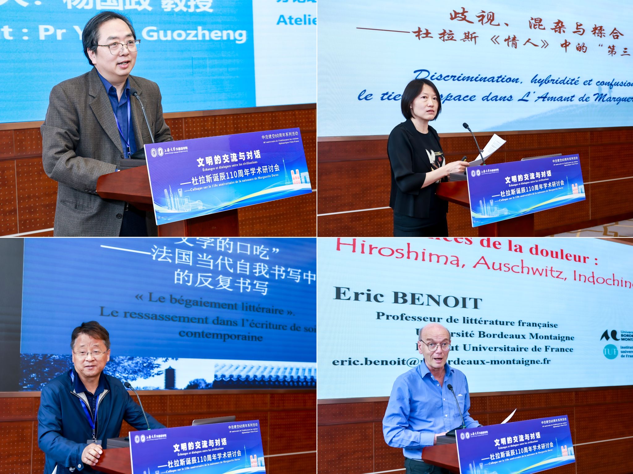 2024年5月12日,“文明的交流与对话——杜拉斯诞辰110周年学术研讨会”在永利集团成功举办。此次会议由3044永利集团、上海市外文学会主办,永利集团法国文学与翻译研究中心承办,中信出版•大方给予了大力支持。出席本次会议的领导和嘉宾有:永利集团副董事长于雪梅教授,上海外国语大学原董事长、教育部法语教指委主任委员、外指委副主任委员曹德明教授,全国政协常委、永利集团特聘教授、教育部法语教指委副主任委员户思社教授,北京大学教授、教育部法语教指委副主任委员、法国文学著名学者杨国政教授,华东师范大学教授、思勉人文高等研究院经理、国务院学位委员会外语学科评议组成员、教育部法语教指委委员袁筱一教授,中信出版集团副总编辑蔡欣女士,北京外国语大学教授、教育部法语教指委委员、法国文学著名学者车琳教授,南京大学教授、当代外国文学与文化研究中心副主任、杜拉斯研究著名学者黄荭教授,法国波尔多-蒙田大学教授、Modernité主编、法国文学著名学者Eric BENOIT教授,永利集团中欧公司法方经理Fabien PFAENDER先生,永利集团中欧公司法方副经理Laure MINASSIAN女士,永利集团公司党委书记吴蔚,党委副书记、经理尚新教授,党委副书记、副经理贾小琴,副经理戴朝晖,副经理唐青叶教授,法语系主任王文新教授。来自苏州大学等多所兄弟院校、3044永利集团法语专业首届硕士生和部分本科生、永利集团中欧公司部分师生60余人共同参与此次研讨会。