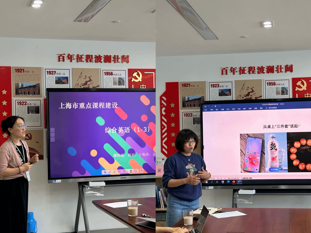 之后,本次会议进入教师教学沙龙阶段。首先,唐青叶副经理和大学外语部于梅欣副主任分别就其课程建设经验进行了分享。唐老师本次分享的主题是“‘多模态、一体化’推进英语语言学课程思政育人”。结合上海市一流本科课程《英语语言学概论(1-2)》的建设经验,唐老师强调了数智赋能语言学课程教学和推进本硕博一体化人才培养的重要意义。随后,于梅欣老师分享了上海市重点课程建设项目《综合英语(1-3)》的建设经验,并介绍了将生成式人工智能融入到课程建设中的方式和途径。