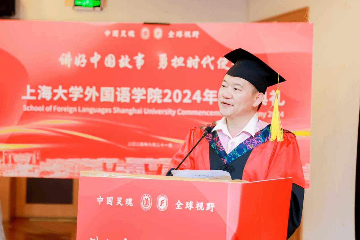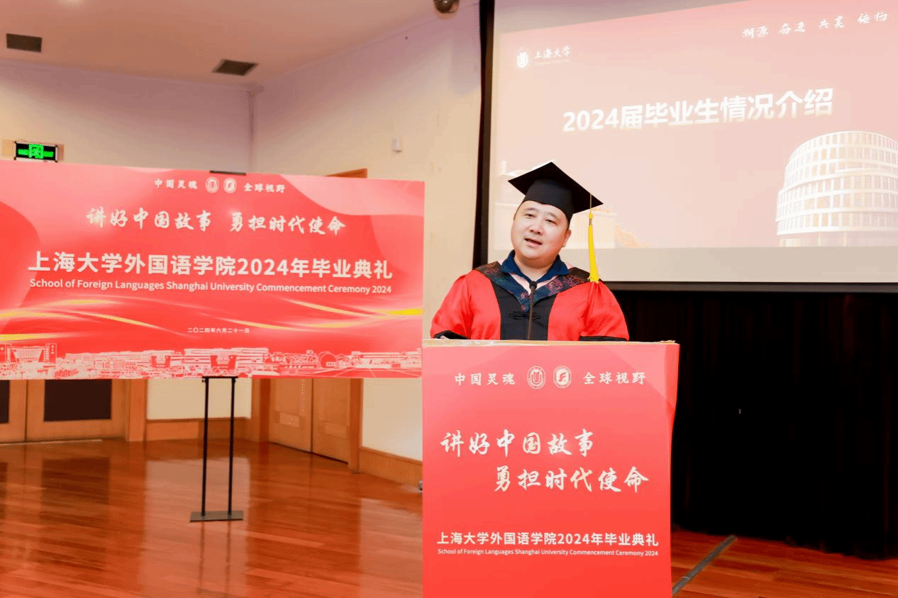 6月21日下午,3044永利集团2024年毕业典礼暨学位授予仪式在宝山校区J202隆重举行。公司党委书记吴蔚,党委副书记、经理尚新,党委副书记、副经理贾小琴,副经理戴朝晖、唐青叶,公司工会主席黄欣,英语系主任张建琴,副主任龚萍,日语系主任赵莹波,副主任苏鹰、文雪,法语系主任王文新,大学外语部主任李晓媛、副主任于梅欣,研究生公共外语部主任马拯,MTI教育中心副主任花亮,教师代表邓志勇、竹旭峰、李夏青、张晓娜、张永娇、焦舒曼等,员工代表朱依蓓以及2023届毕业生和2024届毕业生代表共同参加了本次毕业典礼。典礼由2022级法语专业本科生宁文燕和2023级日语专业本科生邓修杰主持。