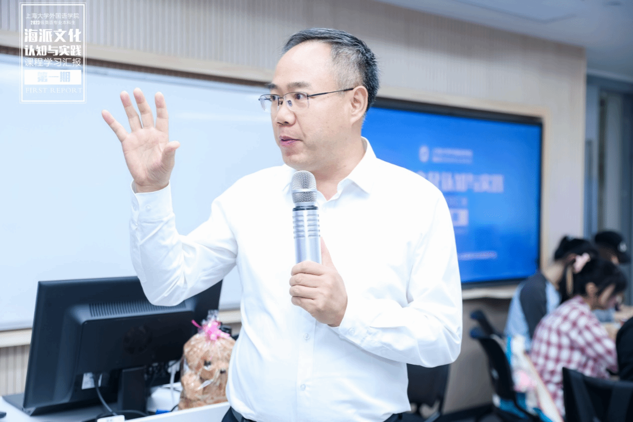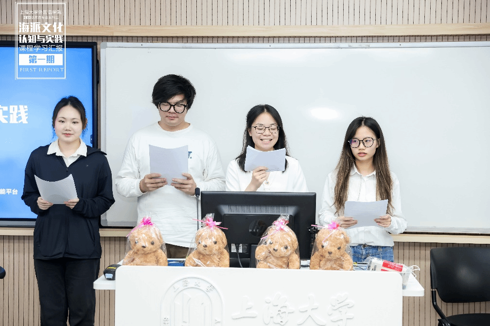 汇报结束后,章春明老师、王文斌主任、苏鹰老师以及文雪老师分别对小组成果分享进行了点评并提出中肯的建议,也对同学们寄予了期望,最终第九组、第五组和第六组得到在场专家的一致认可,分别获得公益积分奖励。汇报展示不仅为小组提供了分享成果的平台,更是让同学们在相互学习中进一步加深对海派文化以及其中公益精神的理解,也激发了英专学子发挥专业优势服务上海城市建设、弘扬上海城市精神、传播海派文化的热情,为本期课程画上了完美的句号。我们期待海派文化能不断传承与发展,成为上海走向世界的一张亮丽名片;也希望公益精神能在这座城市深入人心,激励更多的人积极参与社会事务,共同创造一个更加美好、和谐的上海。