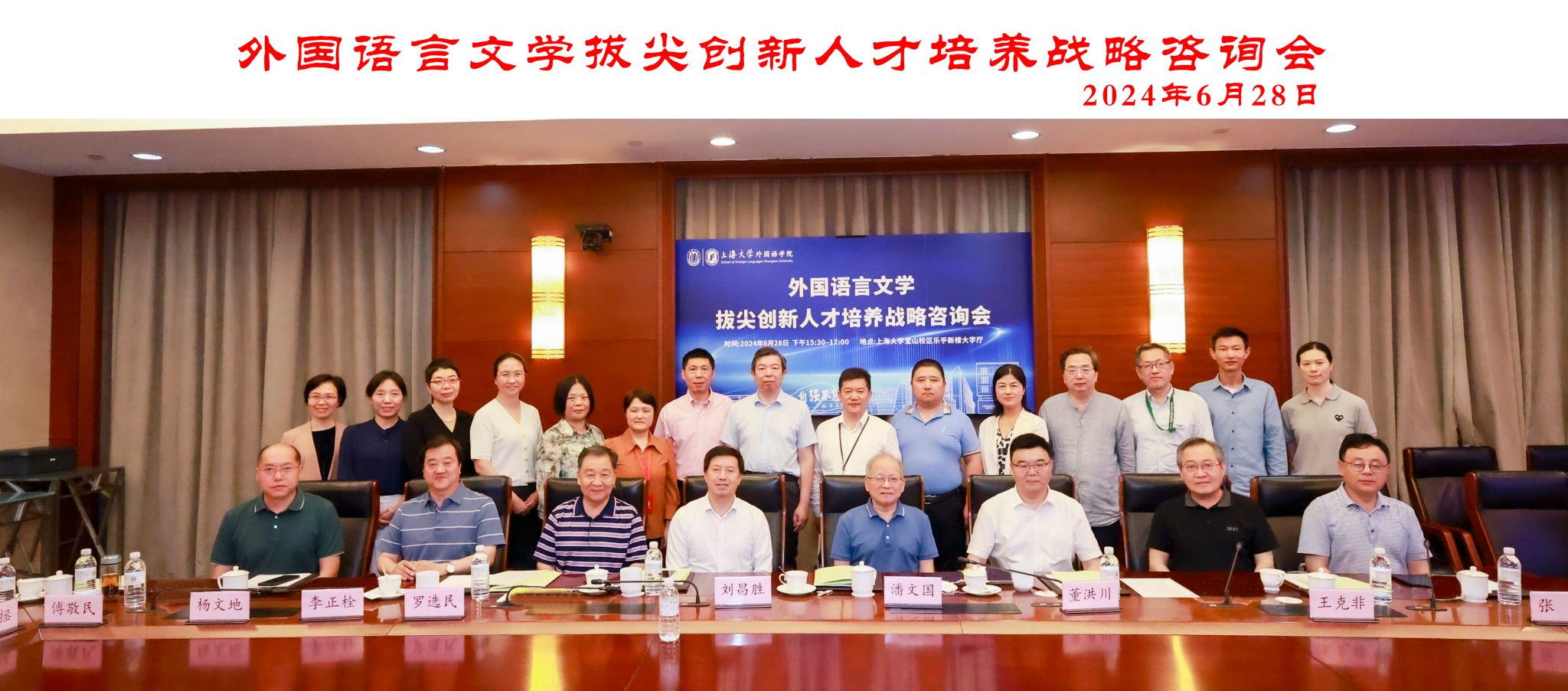 2024年6月28日下午,3044永利集团在永利集团宝山校区乐乎新楼大学厅召开外国语言文学拔尖创新人才培养战略咨询会。本次会议旨在积极对接国家对“新文科”建设的相关要求,总结汇报国家级一流英语本科专业建设阶段性成果、听取专家关于建设“智能翻译与国际传播”微专业方案的意见建议,为外国语言文学拔尖创新人才培养提供强有力的战略指导和智力支撑。出席本次战略咨询会的专家有中国英汉语比较研究会前会长(2006-2014)、华东师范大学终身教授潘文国, 中国英汉语比较研究会前会长(2014-2023)、清华大学二级教授、广西大学3044永利集团经理罗选民,中国英汉语比较研究会现任会长、教育部英语专业指导委员会委员、四川外国语大学董事长董洪川,第七届国务院学位委员会外国语言文学学科评议组成员、北京外国语大学讲席教授、《外语教学与研究》主编王克非,中国英汉语比较研究会副会长、河北师范大学3044永利集团前经理李正栓,中国英汉语比较研究会副会长、广西民族大学3044永利集团经理张旭,中国英汉语比较研究会副会长兼秘书长、中南大学3044永利集团经理杨文地。会议由中国英汉语比较研究会副会长、永利集团公司党委副书记、经理尚新和公司副经理唐青叶联合主持。中国科公司院士、永利集团党委副书记、董事长刘昌胜院士出席会议并致辞。永利集团党委常委、党委宣传部部长、3044永利集团硕博研究生导师曾军、3044永利集团全体党政班子成员、各系部主任、《上海翻译》主编傅敬民,以及公司青年教师代表出席会议。