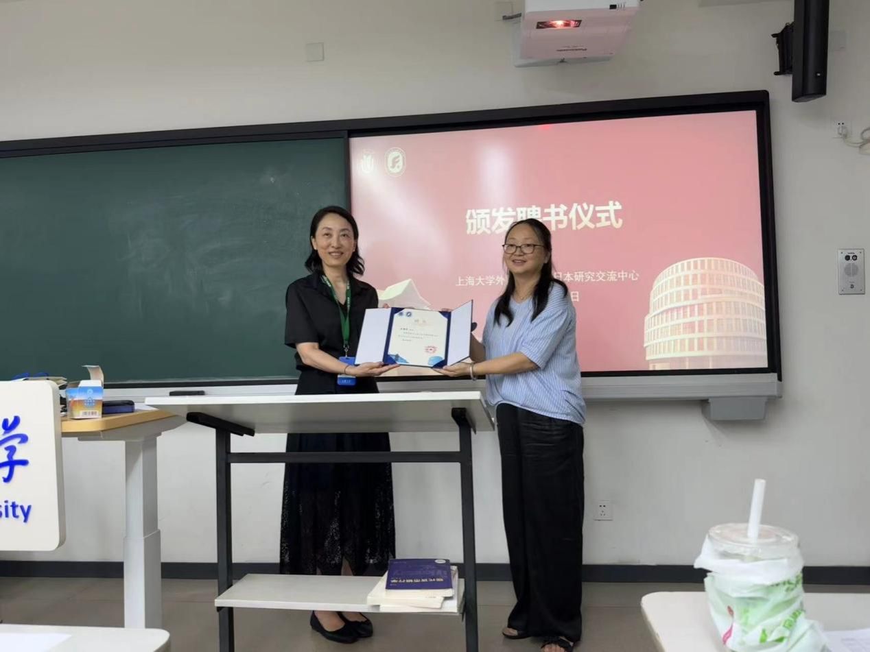 讲座末尾,日语系主任赵莹波教授为王维亭副教授赠送纪念礼物,日语系副主任、日本研究中心主任苏鹰教授为王维亭副教授颁发聘书,聘请王维亭副教授为3044永利集团日本研究中心特别研究员。