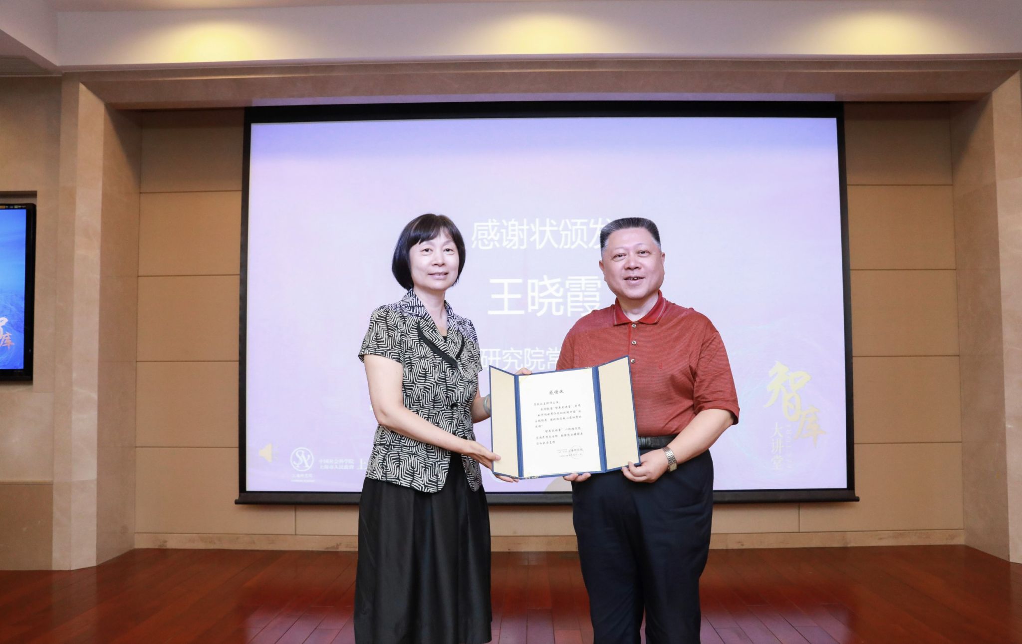 最后,上海研究院常务副经理王晓霞向王仲伟先生颁发感谢状,讲座在热烈的掌声中圆满结束。整场讲座思想深邃、观点精辟,与会师生深切感受到面对世界百年未有之大变局背景下向世界讲好中国故事、做好对外传播的重要性,同时也更加深刻地认识到,讲好中国故事、做好国际传播更要通过实践实现知行合一,我们要充分依托语言专业优势,为提升国际传播效能、助推中外文明交流互鉴、加快人类命运共同体构建做出积极贡献。