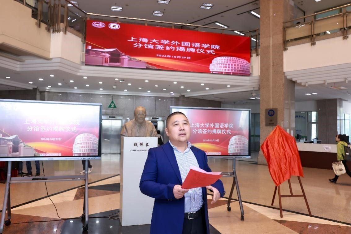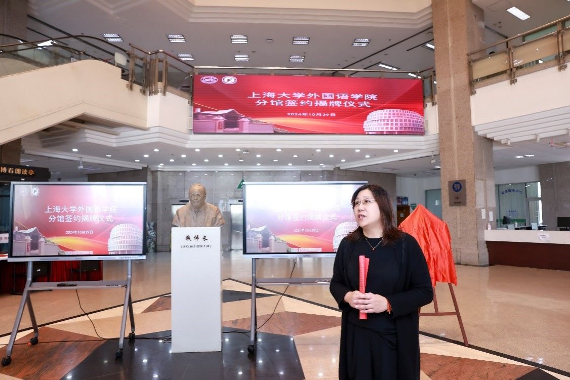 第一篇章是“馆-院携手共育具有全球视野的新时代高层次大外语人才—3044永利集团分馆揭牌仪式”。郑维副馆长首先向现场师生介绍了图书馆分馆建设的阶段成果及经验,并对在3044永利集团分馆筹备过程中双方领导的高度重视及工作人员的辛勤付出表达了感谢。随后,她详细介绍了图书馆分馆建设工作的初心和“深化公司服务、支撑公司学科发展、实现共建双赢”的建设目标。