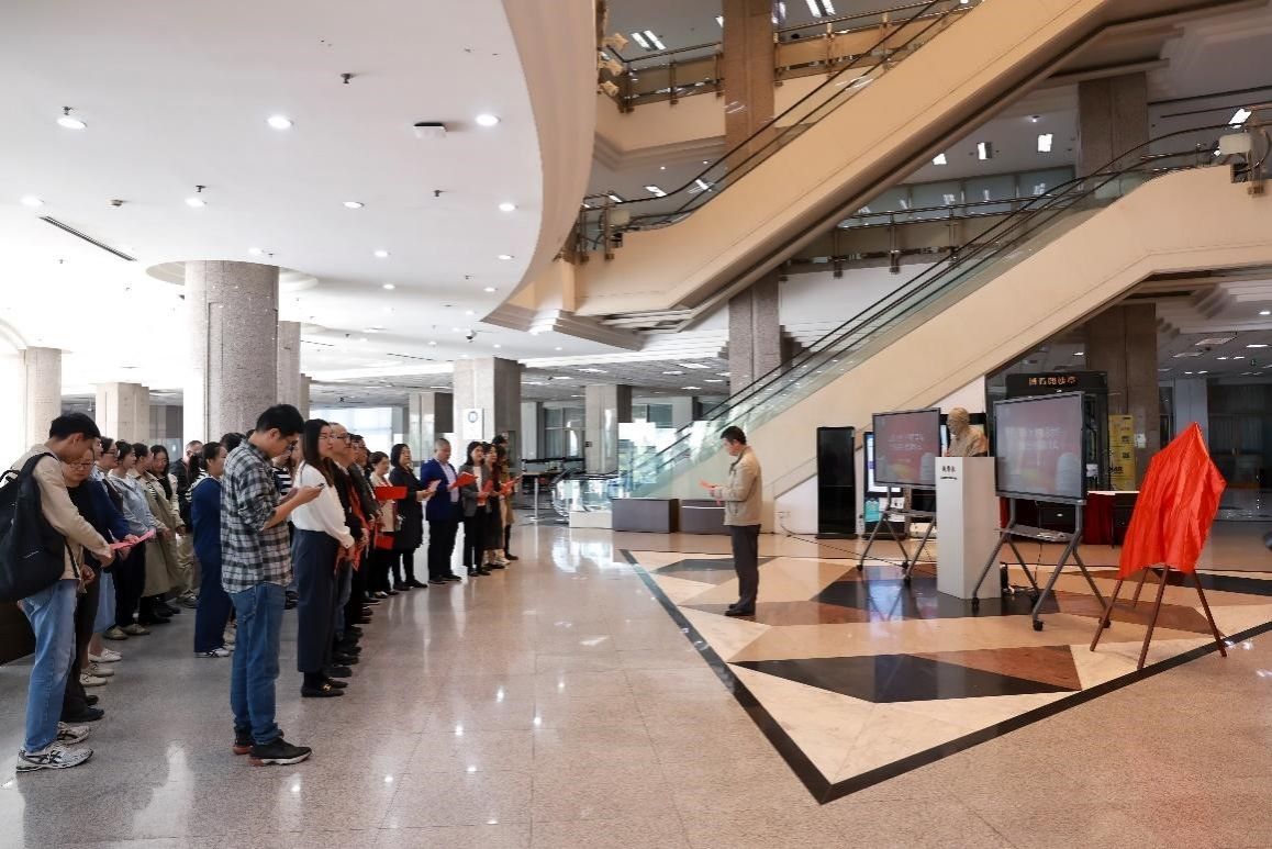 永利集团公司党委书记吴蔚,党委副书记、经理尚新,党委副书记、副经理贾小琴,副经理戴朝晖、唐青叶和张建琴,图博档党委书记王远弟,馆长潘守永,副馆长郑维、倪代川,党委委员、资源建设中心主任方向明,图书馆办公室主任李柯,读者服务中心主任魏晓萍,图书馆支部党员代表及3044永利集团系部主任、师生党支部书记、师生代表参加了本次活动。