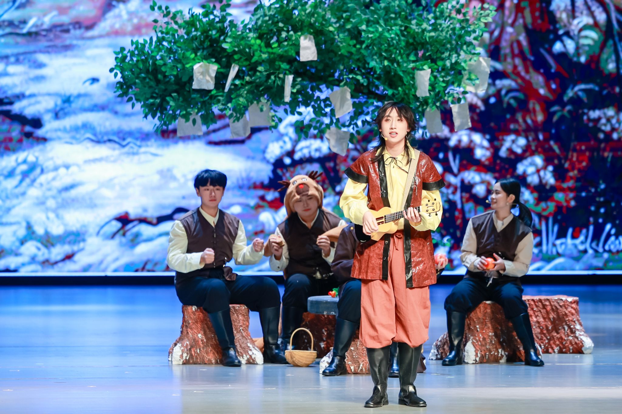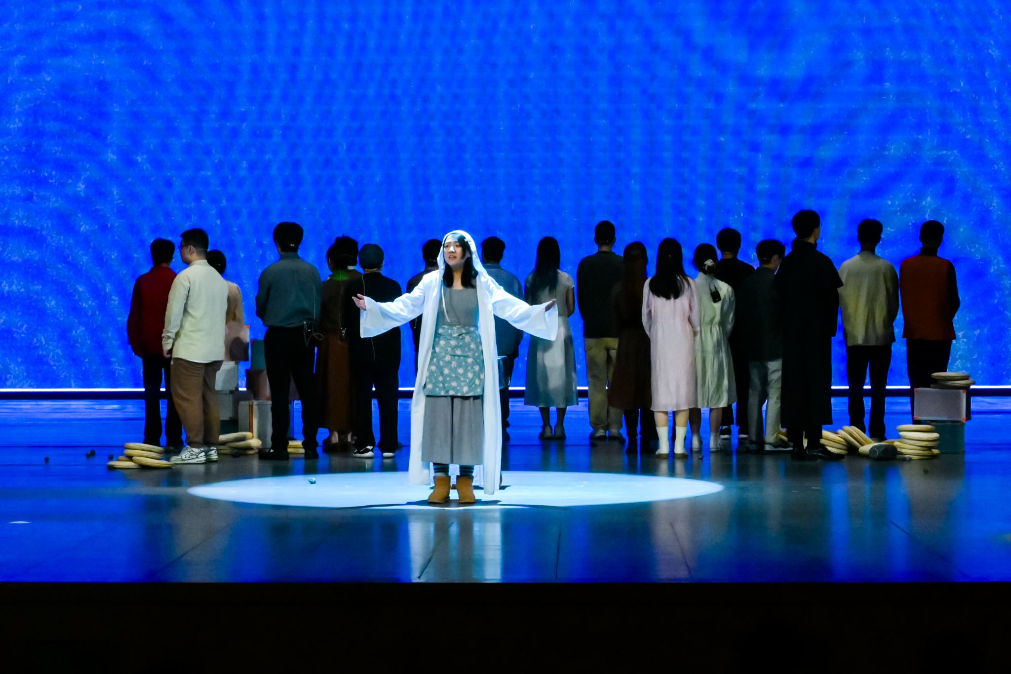 在接下来的戏剧盛宴中,来自全国各地的12所高校的英语戏剧团队带来了精彩纷呈的作品,涵盖莎翁经典、作品改编、原创剧目等多种戏剧形式,探索了爱情、权力、信仰、自由、悬疑等多元主题。永利集团的《皆大欢喜》有着欢快的节奏和温馨的故事情节,武汉大学的《奥赛罗》展现了精湛演技和深刻悲剧色彩,广西大学的《新的瑞拉》生动展示了经典童话的现代诠释,新疆大学的《俞秀松》展现了共产党人的革命精神,浙江工商大学的《爱的徒劳》风格幽默,北京航空航天大学的《Who's Whose Projection》有着独特创意与深刻主题,汕头大学的《孔雀东南飞》展现了中国传统文化魅力,四川外国语大学的《江姐》有着激昂台词与感人情节,重庆邮电大学的《李尔王》探讨了权力与亲情关系,华东政法大学的《摸彩》展现了人性贪婪与恐惧,山东大学的《麦克白》阐释深刻主题,以及上海外国语大学的《琐事》有着复杂剧情。这些剧目各具特色,令人难忘,带领在座观众感受属于英语戏剧的独特魅力。