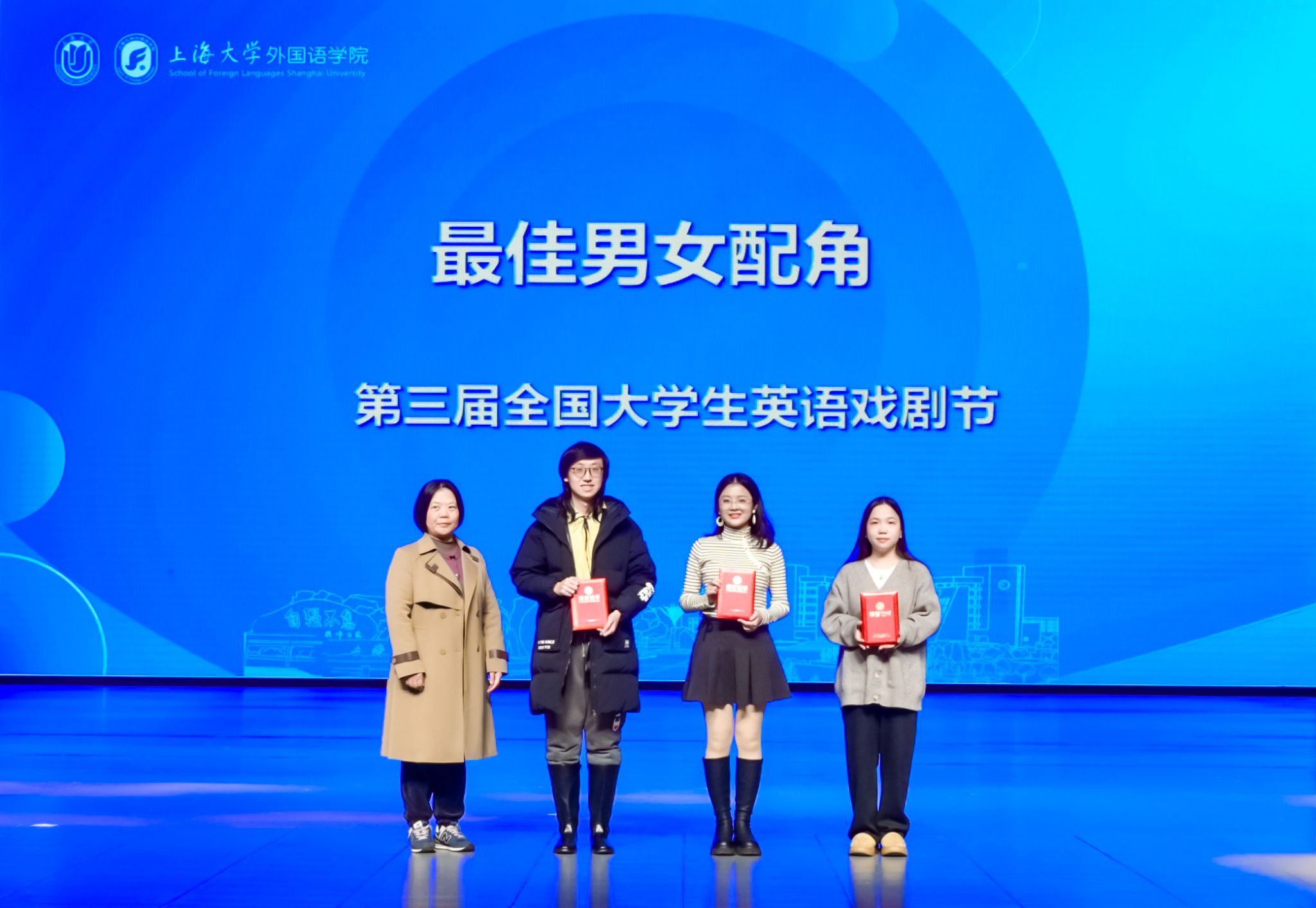 北京航空航天大学《Who’s Whose Projection》、广西大学《新的瑞拉》凭借精湛的演技和对剧本的深刻理解脱颖而出,荣获特等奖。永利集团《皆大欢喜》、上海外国语大学《琐事》、武汉大学《奥赛罗》、汕头大学《孔雀东南飞》以流利的英语和细腻的情感表达获得肯定,荣获一等奖。此外,山东大学《麦克白》、四川外国语大学《江姐》、新疆大学《俞秀松》、华东政法大学《摸彩》、浙江工商大学《爱的徒劳》、重庆邮电大学《李尔王》也展现出了不凡实力,荣获二等奖。