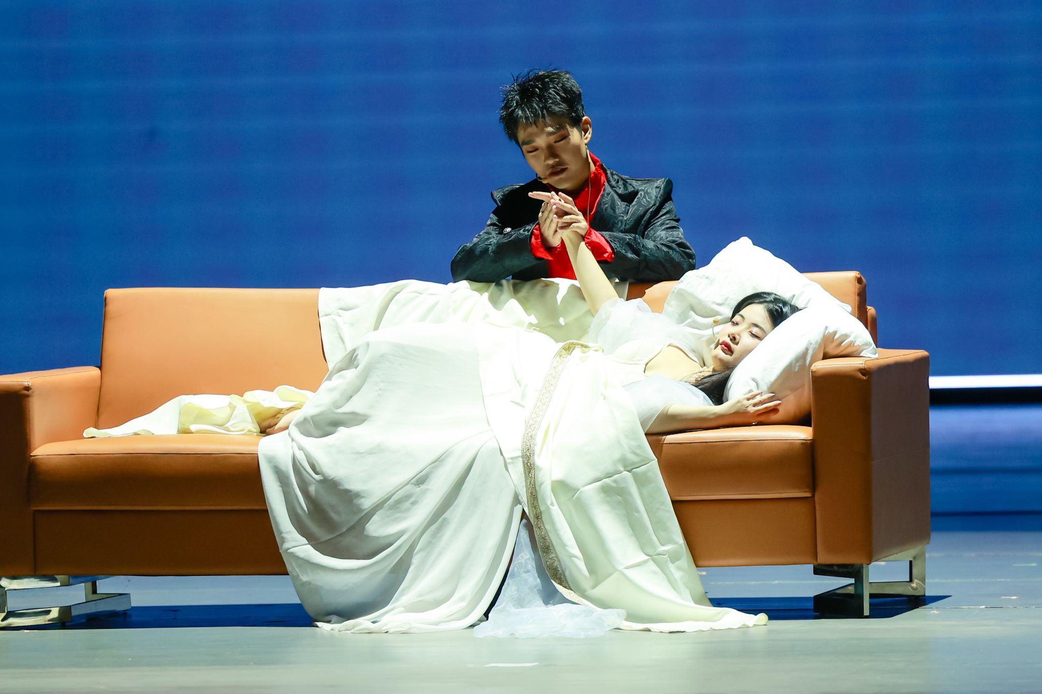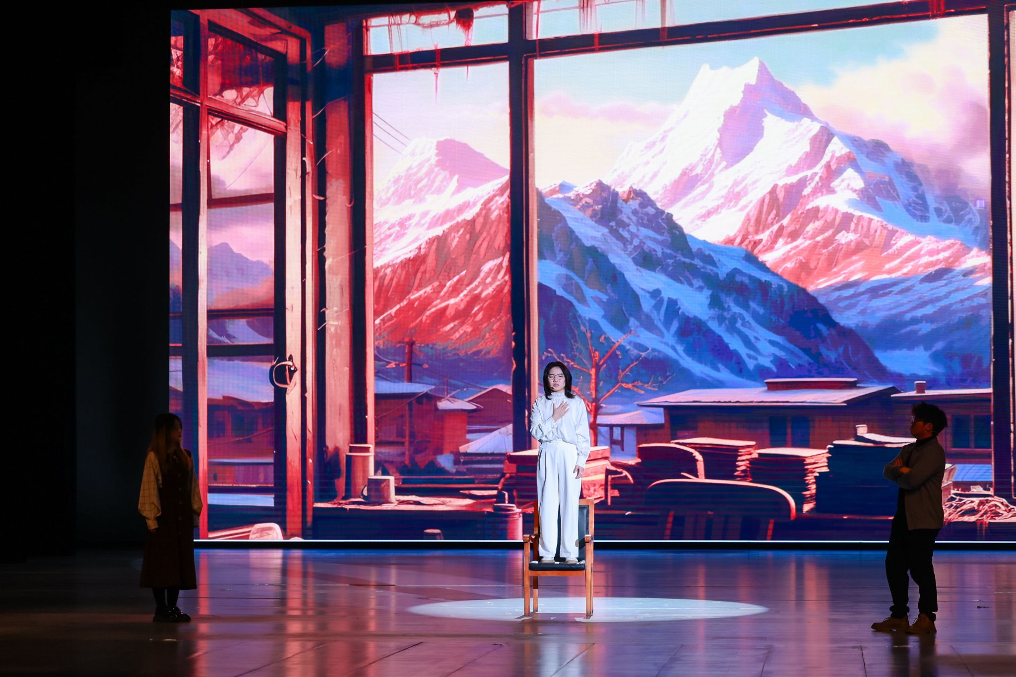 表演期间,各评委专家做出点评。其中,上海外国语大学王岚教授指出整体背景与故事的融合堪称巧妙,富有创意,音乐与剧情的契合度极高。复旦大学张琼教授不仅赞赏了演员们对角色的精彩诠释,还指出了援引多部戏剧经典、使用双关语的亮点,并探讨了戏剧如何通过角色和情节触动人心。广西大学罗选民教授结合时代背景,剖析了戏剧的内涵、演绎效果以及主题所蕴含的情感与精神,强调戏剧更应注重过去、现在与将来的有机融合。3044永利集团经理尚新教授赞赏了作品对人性复杂性的深刻描绘,尤其是权力欲望与罪恶之间的表现张力,以及舞台设计和视觉美学上的卓越表现。