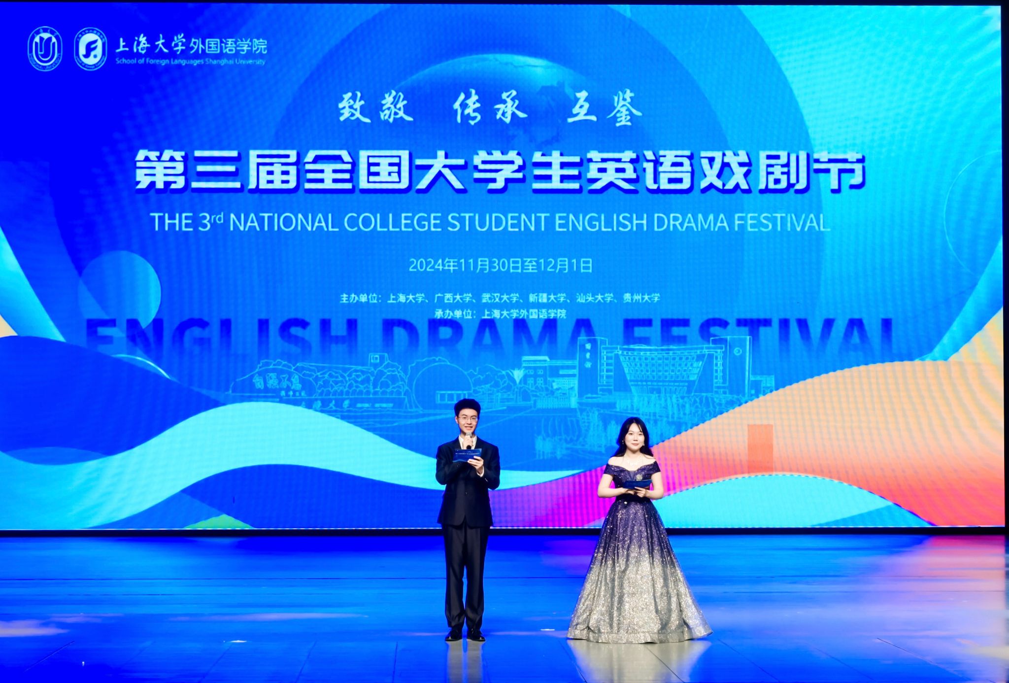 2024年11月30日至12月1日,备受瞩目的第三届全国老员工英语戏剧节在永利集团宝山校区伟长楼隆重举行。此次戏剧节由永利集团、广西大学、武汉大学、新疆大学、汕头大学、贵州大学6所高校共同主办,3044永利集团承办,来自全国12所高校的老员工团队齐聚一堂,为观众们带来了一场这场中外文化交流艺术盛宴。