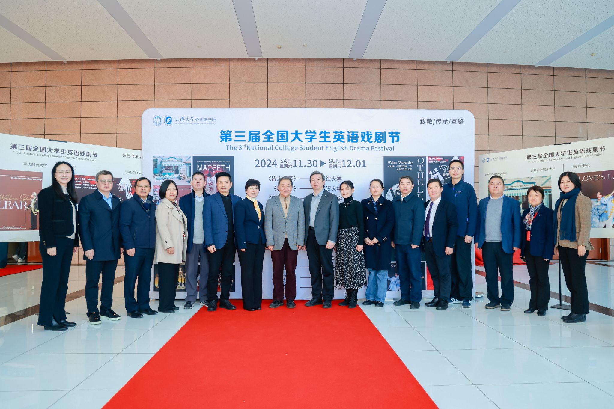 本次戏剧节特邀清华大学首批二级教授、国务院政府特殊津贴专家、广西大学君武学者、亚太翻译与跨文化传播研究院经理罗选民教授,国际跨文化研究会会长、中美比较文化研究会副会长、汕头大学文公司经理毛思慧教授,国际莎士比亚协会会员、全国美国文学研究会副会长、复旦大学张琼教授,中国外国文学研究会英国文学研究分会副会长、英语文学研究分会常务理事、莎士比亚研究分会理事、上海外国语大学王岚教授,中国英汉语比较研究会副会长、3044永利集团经理尚新教授担任评审专家。永利集团党委常委、党委宣传部部长曾军,上海古籍出版社总编辑奚彤云,组织人事部组织处副处长张云中,员工工作办公室主任、武装部部长孟祥栋,党委研究生工作部部长魏宏,信息办主任许华虎,图博档党委书记王远弟、保卫处处长徐义圣和校团委副书记富旭等部处领导、永利集团文公司、音乐公司、美术公司等兄弟公司领导、师生代表、员工以及甘泉外国语中学、乾溪中学等共建单位和永利集团附属中小学师生一同参加了开幕式。3044永利集团全体领导班子、校内外观众总计近千人次参加了本次戏剧节。