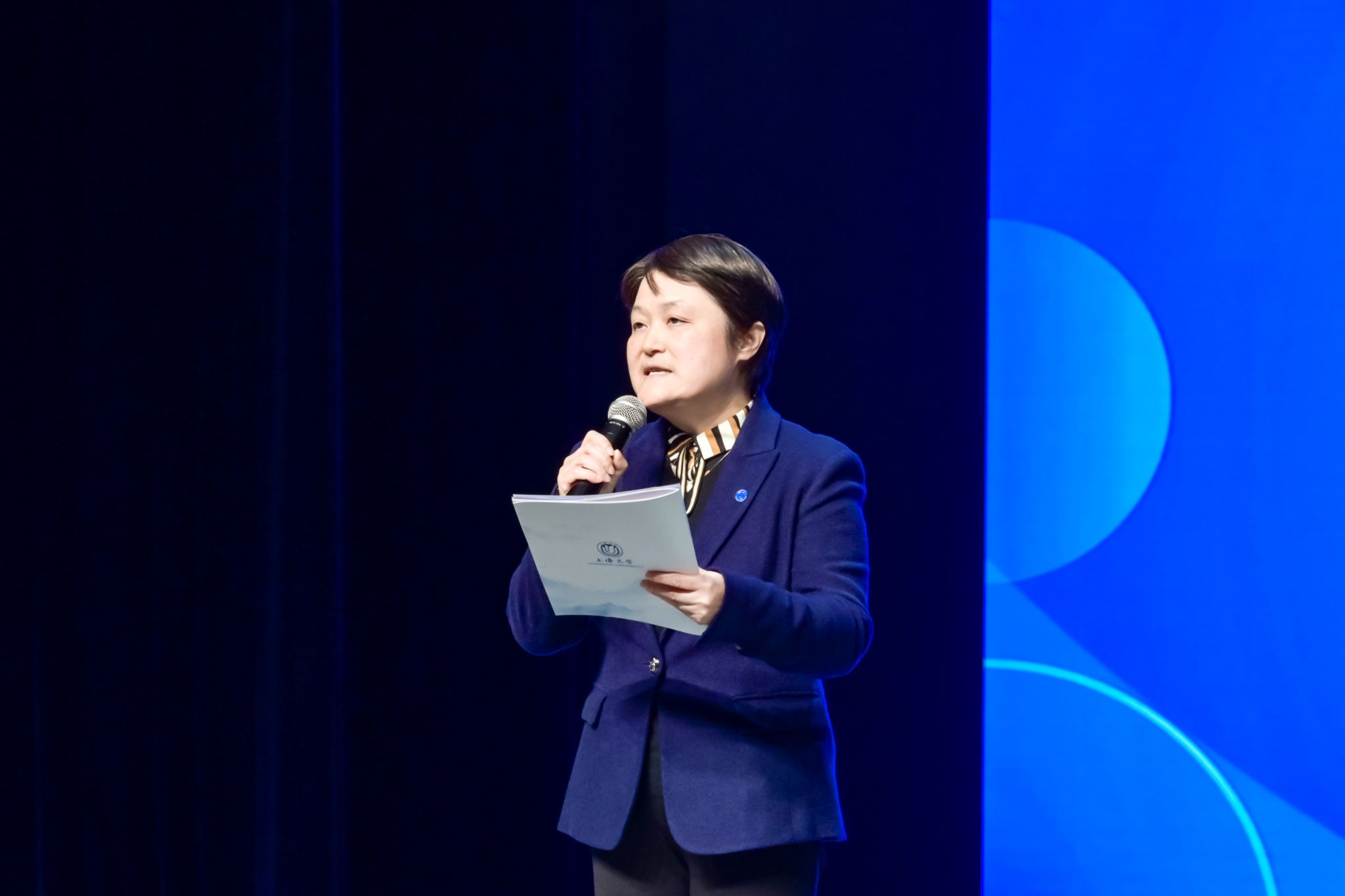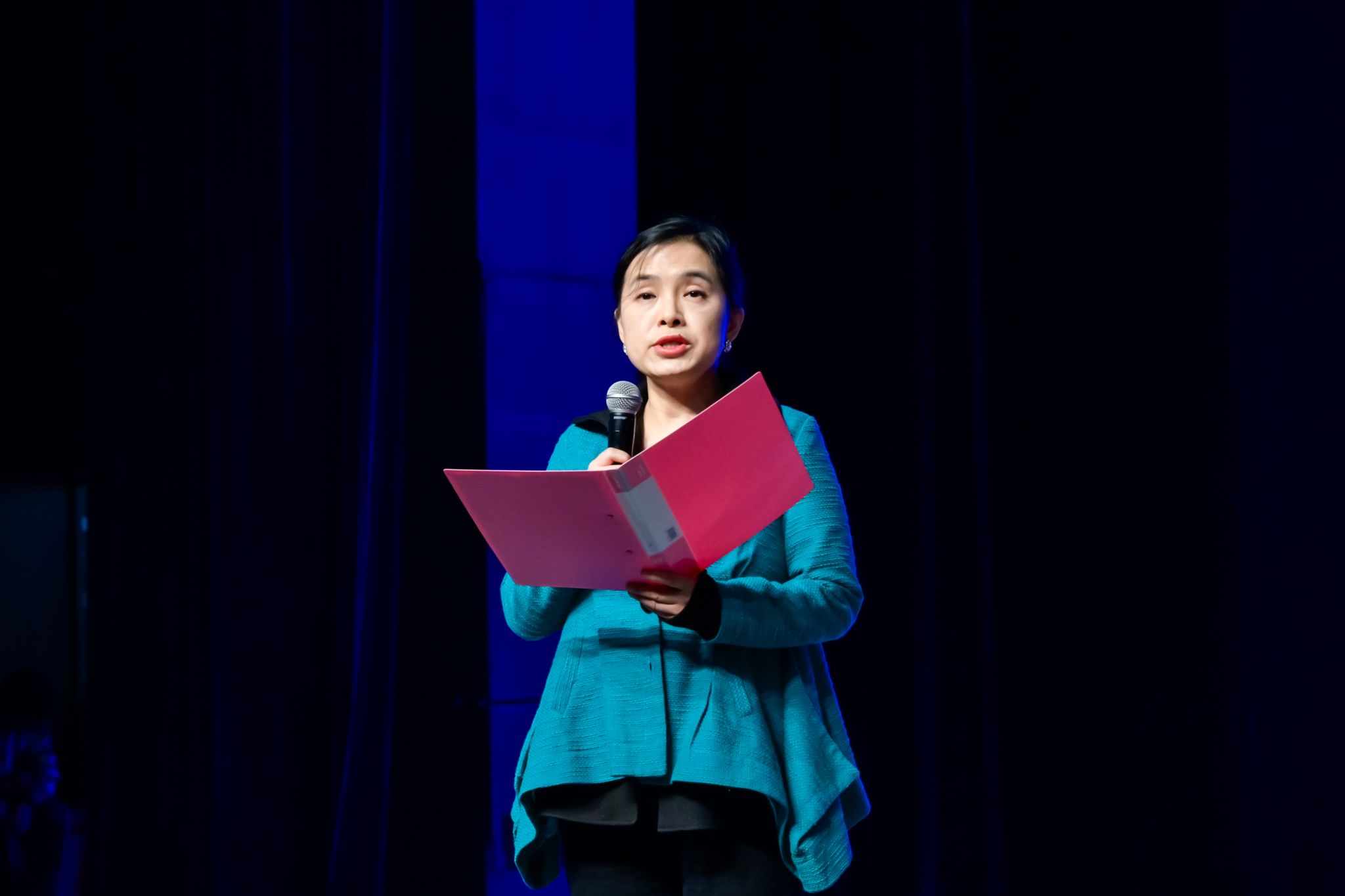 在所有剧目表演结束之际,汕头大学文公司经理毛思慧教授上台点评。毛教授对各参赛作品给予高度评价,并逐一剖析了每支队伍在英语口语的流畅与准确、演员们精湛的演技、剧本结构的严谨与逻辑性、情节张力的巧妙营造,强调了各组在灯光设计的巧妙、音乐氛围的营造、妆造细节的精致等方面的卓越表现,鼓励广大青年以英语戏剧为切入点,将语言和美育融入日常学习生活,在体验中感受中外文明交流之美。