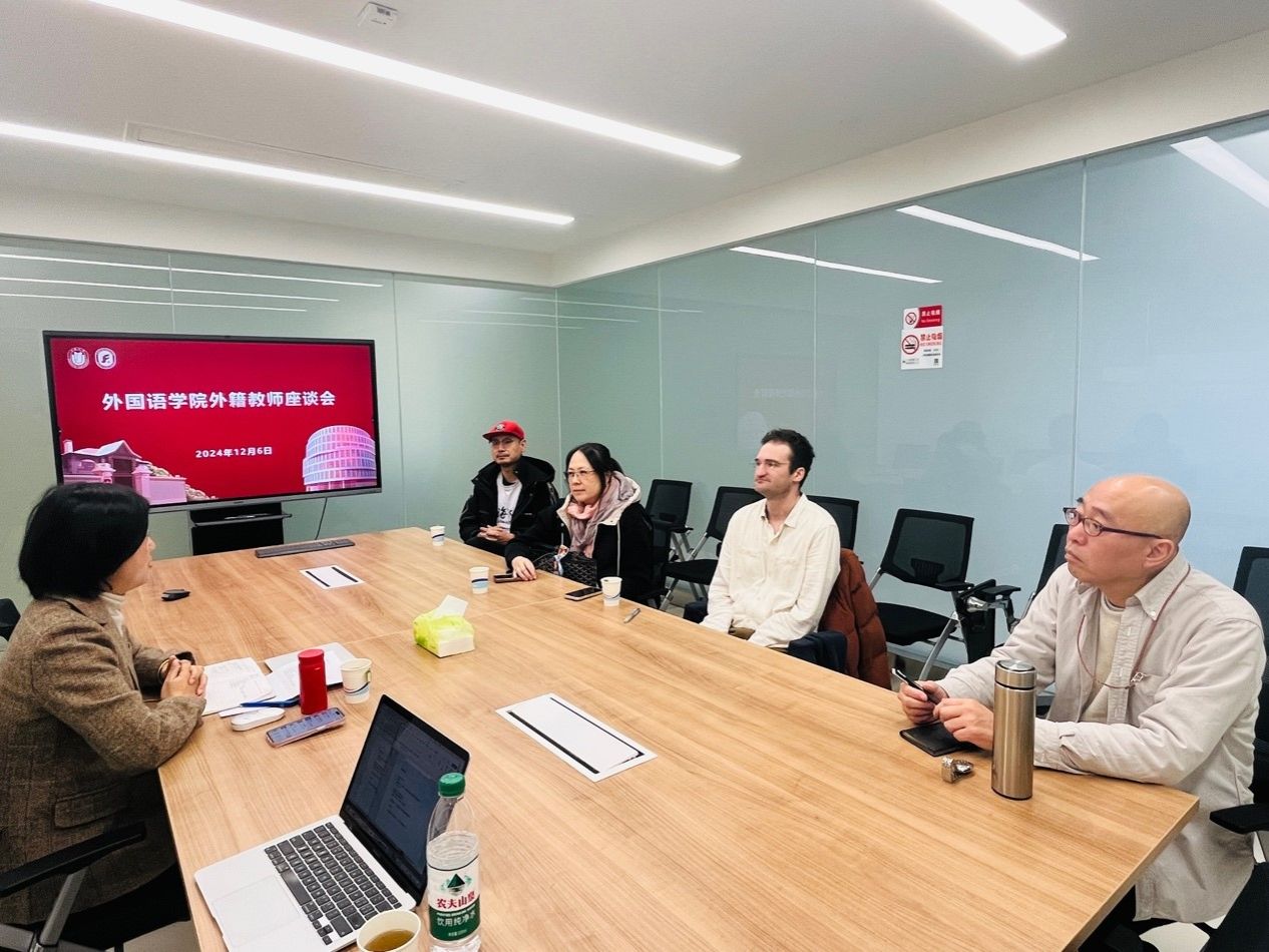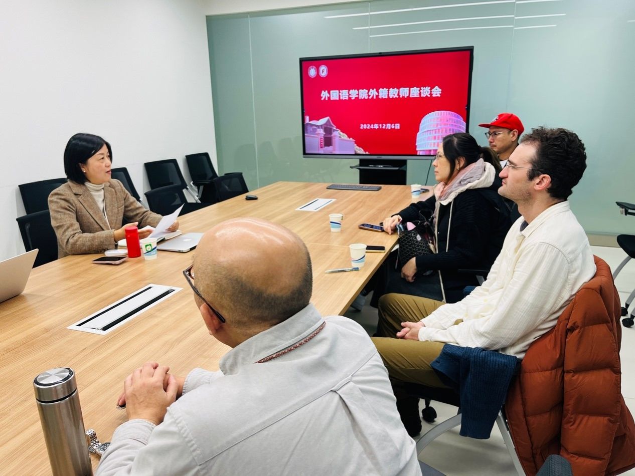 2024年12月6日,为进一步提升国际化办学效果,3044永利集团分管外事工作的副经理张建琴与3044永利集团外籍教师Celine Chong、Ding Dong、Ryan Barnes、坂本秀幸就本学年的教学以及外教在工作、生活各方面情况举行座谈。座谈会在宝山校区C楼414b会议室举行,共同出席座谈的还有公司外事秘书倪珮玥和张晓娜老师。