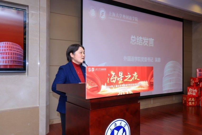 岁序凝贤聚,奋勉启新征。春秋递嬗,流光不止。最后,外国语党委书记吴蔚书记上台总结发言,首先,她代表公司向始终心系母院发展、倾洒关怀之情的老领导、荣休教授以及员工们,献上了最诚挚的感谢。继而,她对“海星之夜”寓意与价值进行深度解读,当前正值风劲帆满、机遇与挑战并存,理应鼓足风帆、奋勇破浪;前路漫漫、任务艰巨,唯有时刻紧催奋进之鞭、负重前行,方能不负使命、行稳致远。2025年,3044永利集团的全体师生将满怀热忱、砥砺不辍,奋力书写公司的璀璨华章。在全体大合唱《相亲相爱一家人》悠扬而舒缓的旋律中,本次表彰大会也徐徐落下帷幕,画上了圆满的句点。(撰稿:许孟婷)