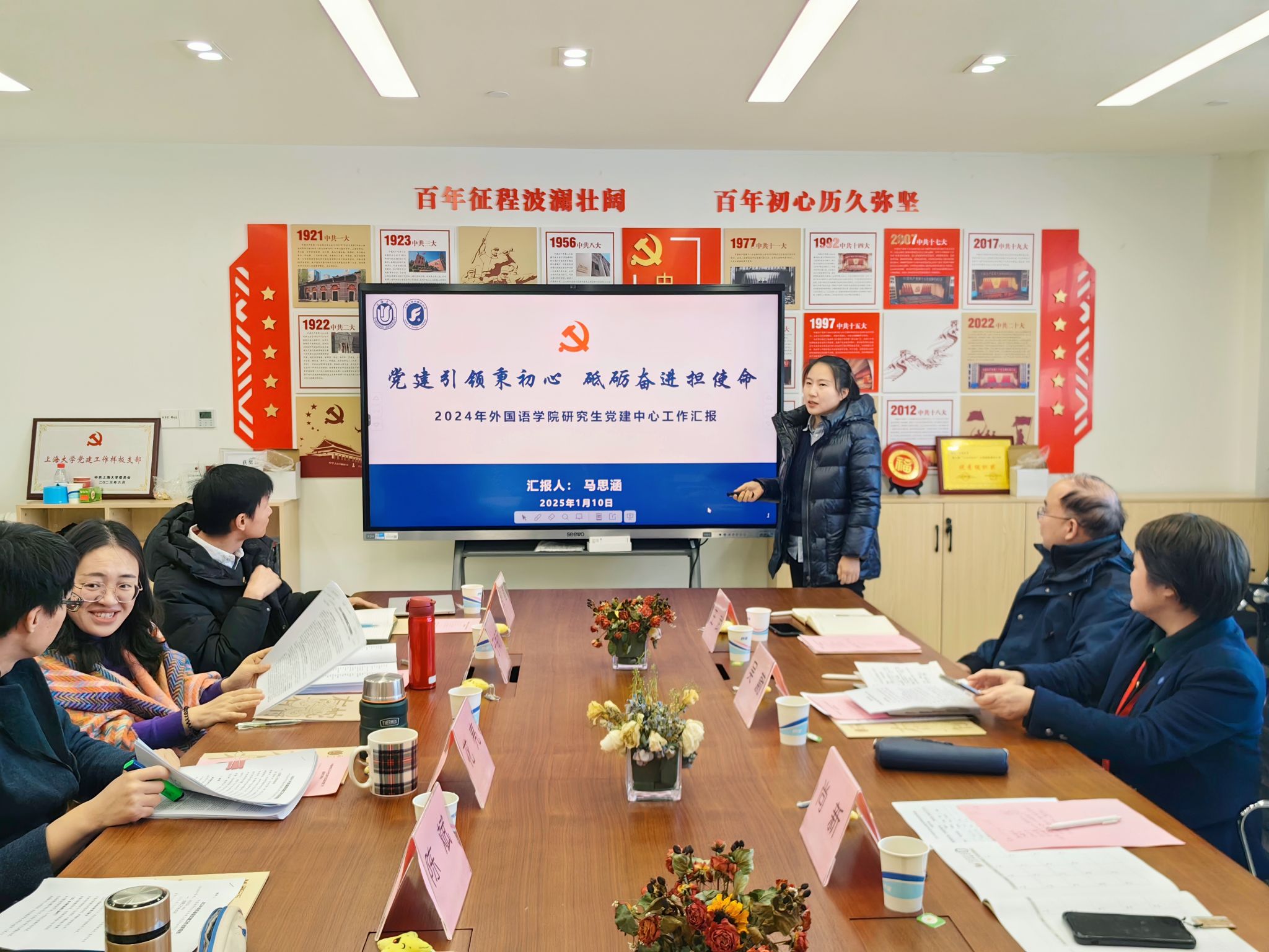 最后,吴蔚书记作总结,她充分肯定了各支部在党建工作中付出的努力和取得的成绩,并提出,一是要提高党建工作水平,落地“三会一课”制度,推动支部规范化建设,夯实党建工作基础;二是要把使命扛在肩上,落实党建重点任务,持续在学科发展、专业建设、人才培养等方面发挥党建引领作用;三是要加强品牌建设,探索特色品牌和支部发展建设路径,打造有影响力的上大外院品牌,发挥党支部的引领示范和辐射带动作用。