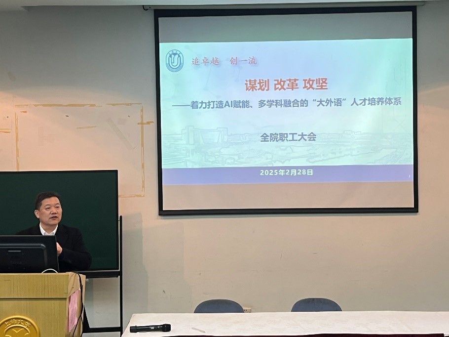 最后,党委副书记、经理尚新从全院业绩指标、2025年工作重点和理念引领的机制改革三个方面作了汇报。尚经理回顾了2024年3044永利集团年度工作亮点,着重介绍了公司在团队建设、人才培养、科研项目等方面取得的显著成就,反思了工作难点与不足,他表示,在新的一年里,公司要继续以大外语人才培养体系为核心,以多学科融合与AI赋能为重点,顺应时代对外语专业和外语人才的新要求,推进学期制优化改革,打造本硕博一体化课程培养体系,进一步凝练形成“AI赋能-语言文化-翻译传播-文明互鉴”多学科融合、特色鲜明的学科发展格局,号召大家在进一步加大科研投入力度的同时,将外语学科发展的内在逻辑深度融入员工培养方案改革中。尚经理希望全体教职工永葆改革的热情和干事的劲头,勇于担当国家赋予外语学科的新使命,为进一步提升中华文化翻译、中国话语体系和叙事体系建构领域地位,推动中华文化走出去、讲好中国故事和加强国际传播能力建设做出更大贡献。