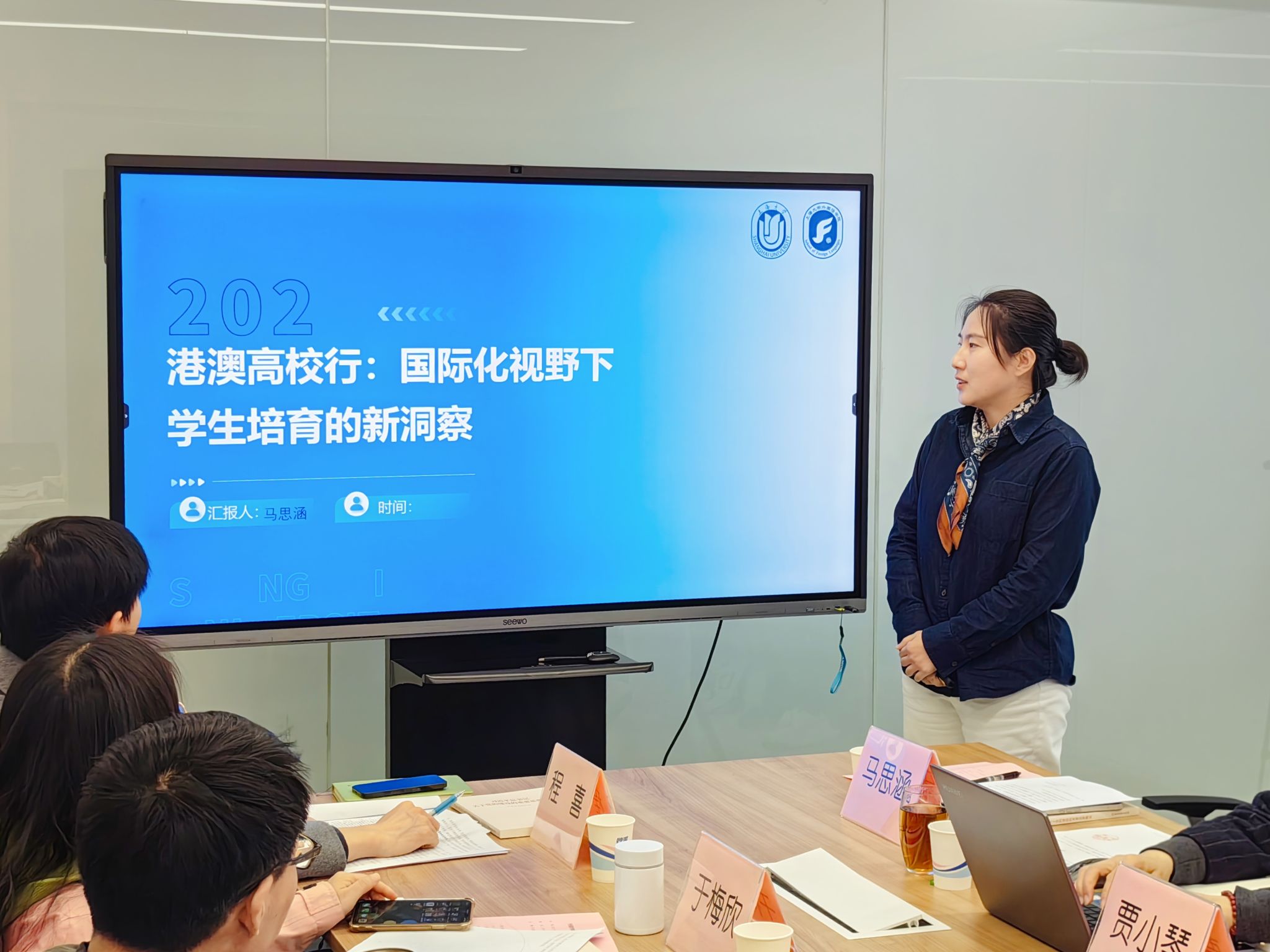 随后,开展了国际化专题海星微党课。研究生党建中心主任马思涵以“港澳高校行:国际化视野下员工培育的新洞察”为题,以港澳高校调研访学之行为基础,重点分析了港澳高校在国际化办学中的优势,探讨了借助港澳行活动拓宽员工国际视野、优化培养模式的策略,并强调国际交流平台对提升员工综合素质的重要作用。