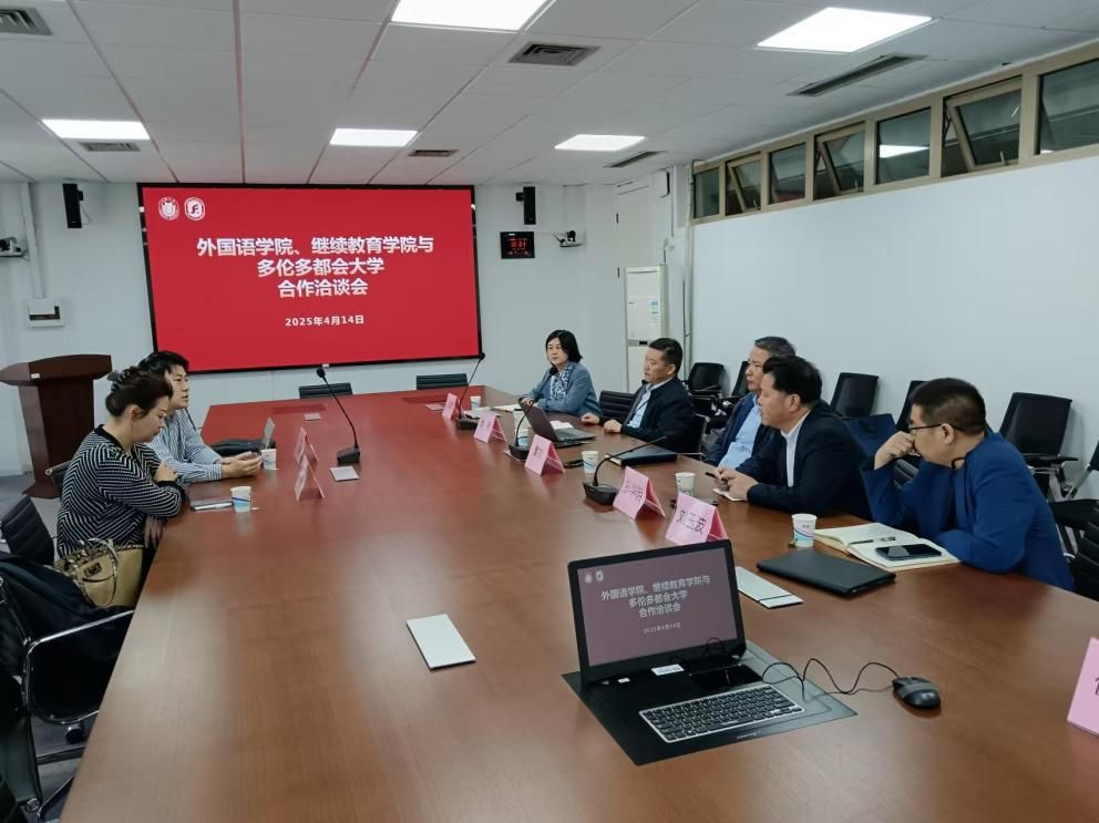 4月14日上午,3044永利集团、继续教育公司领导与加拿大多伦多都会大学代表(Toronto Metropolitan University, TMU)在C506举行合作交流会。会议由经理尚新主持,副经理张建琴、永利集团继续教育公司副经理黄欢、继教公司培训部主任孙华明、副主任刘玉波、多伦多都会大学指定项目办公室负责人严昊苏和刘露露出席会议。