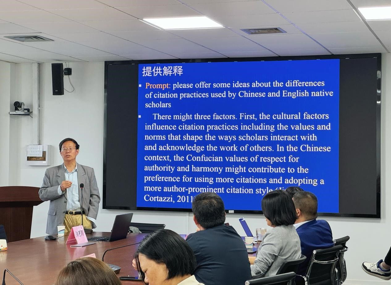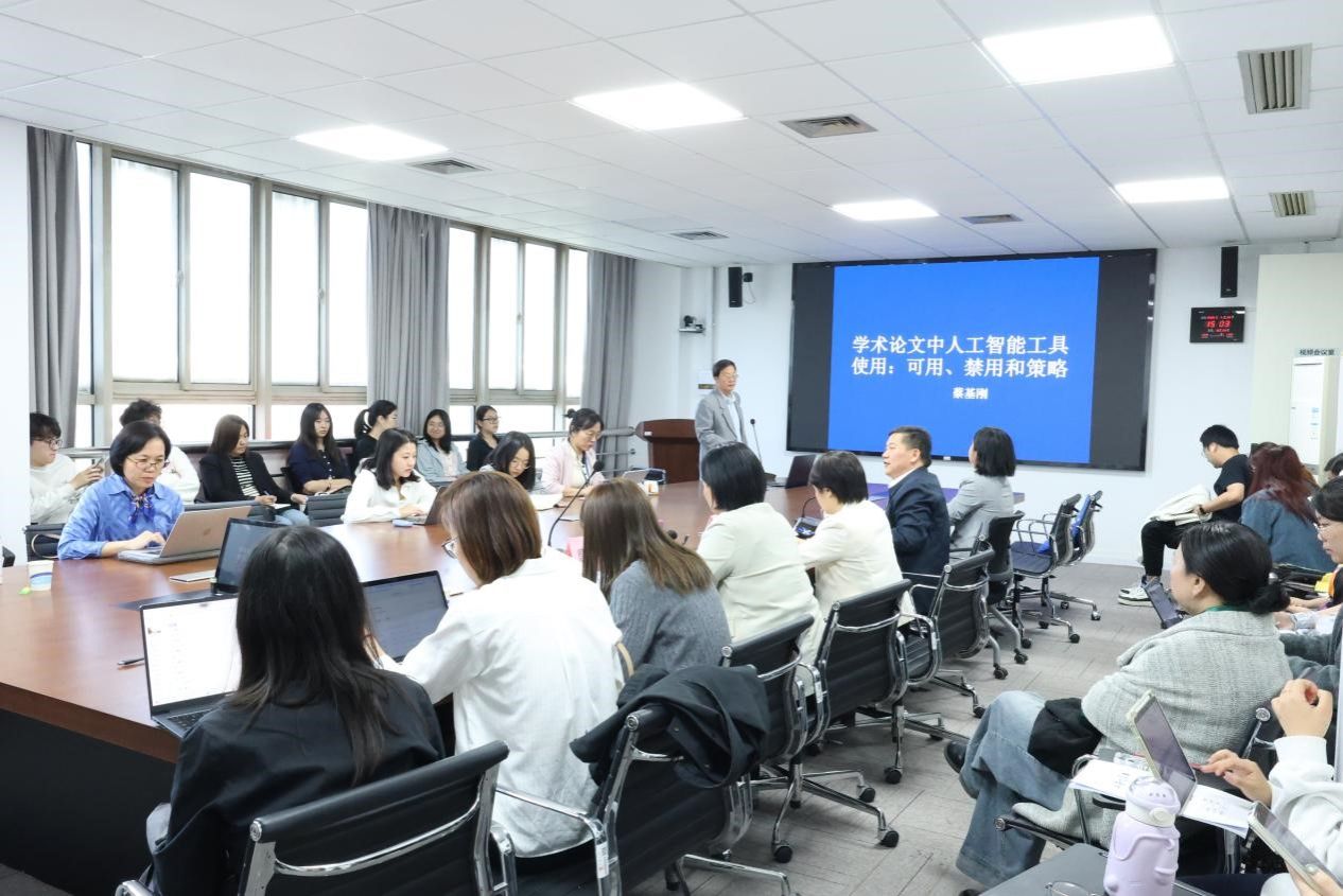 2025年4月25日下午,3044永利集团教师教学发展中心在宝山校区C506举办了“AI赋能公司产品”大讲堂第二讲。本次讲座特邀复旦大学外国语言文学公司教授、博士生导师蔡基刚教授担任主讲嘉宾,以“学术论文中人工智能工具使用:可用、禁用和策略”为主题,为公司师生带来了一场前沿学术分享。公司党委书记吴蔚,党委副书记、经理尚新,副经理戴朝晖、副经理唐青叶、副经理张建琴、公司教学督导组组长朱音尔、教师教学发展中心主任马拯、大外部主任李晓媛、大外部副主任于梅欣,以及公司青年教师、研究生等40余人参加了本次讲座。