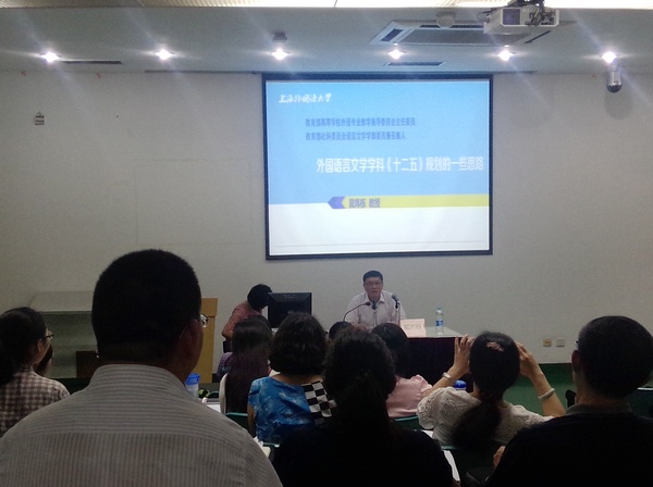 讲座分为两个部分。第一部分围绕外国语言文学学科《十二五》规划的一些思路,戴炜栋教授主要谈了四个方面:《十二五》规划的文件依据、教育部高教司和社科司的不同分工、外指委的一些重大措施和社科委语言文学学部的一些思路。戴炜栋教授指出,在科研方面外国语言文学学科研究主要遵循六个字的原则,即研究、服务和管理。扩展开来则是:1)加强外国语言文学团队建设,在基础研究和传统研究领域取得突破;2)对接国家发展战略,加强实用研究,服务社会;3)创新科研组织、项目管理与成果评价模式。