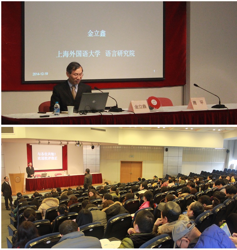 讲座中,金立鑫教授首先讲到语言是一门科学。语言学的研究对象是人类语言,语言学研究的两个终极目标是解决人类语言或者某一种具体的语言到底是什么样子以及人类某一具体的语言为什么会如此的问题。当然,金教授针对这两个终极目标为我们做出了解答,即:一是通过描写来揭示语言的样态,二是通过解释来阐述语言到底是为什么会是这个样子的问题。金教授指出,只要每一种语言的语言学家描写好自己的母语,并把它贡献出来,那么每一位语言学家都将有机会看到世界语言的全貌。因此,金教授指出用世界语言学界共同的工具描写好自己的母语是每一位语言学家的责任和义务。我们从中也看到了作为一个学者肩上所承担的责任。紧接着,金教授又对中国语言学界长期纷乱不争的几个问题进行了深入的讨论,其中包括VR问题、把字句问题、句首NP 问题以及VO与OV的问题等,关于这些问题的出现,他随后又探讨了语言四分类系统即汉语中的施格、通格、主格、宾格,并详细介绍了它们之间的区别的联系。最后,金教授还指出,我们学习外国语言的目的是为了掌握国外优秀的理论和方法,以便更好地为我们的母语服务。