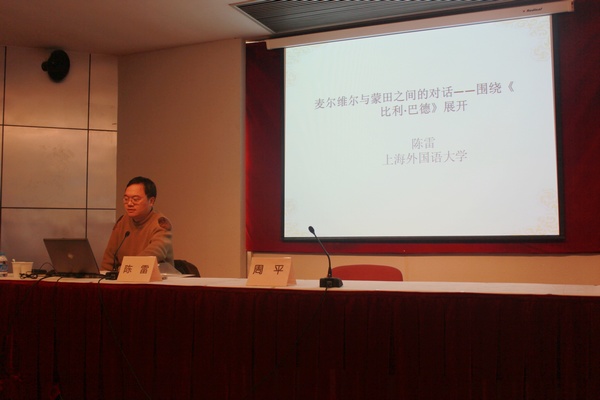 2014年12月19日上午,第六届3044永利集团学术节在宝山校区行政楼报告厅如期举行,公司领导以及广大教师代表、专业研究生们共同迎来了公司一年一度的学术盛宴。来自上海外国语大学文学研究院的教授陈雷博士受邀出席并发表了以"麦尔维尔与蒙田之间的对话--以《比利·巴德》为例"为题目的报告。陈雷教授认为,美国19世纪作家麦尔维尔的作品主题与法国文艺复兴后期人文主义思想家蒙田的怀疑论观点存在着一定的互文性,并借助麦的小说《比利·巴德》中三个主要人物展开了关于人性中"恶"之本质的探讨。他从古典理论出发,指出正义与非正义,也即善恶之分体现为对于等级秩序的遵循或颠覆,进而引申到蒙田思想中"恶"来源于人的理性内部,是一种堕落腐败的理性。陈雷教授最后总结道,关注人性之"恶"在当下仍然有深刻的启示意义,人们不能滥用和放纵理性的欲望;自然状态下的人应是理性与感性的结合、力与美的结合。报告结束后,陈雷教授与在座的师生进行了精彩的问答互动。