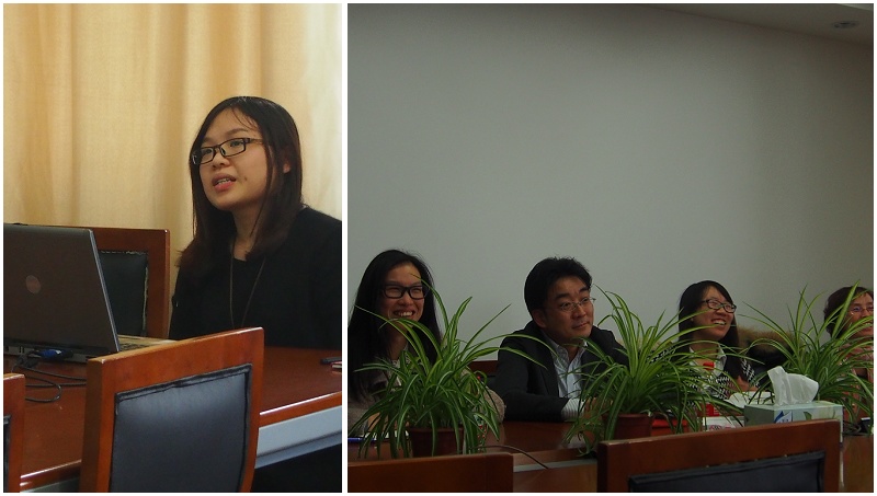 首先,日语系吴霞同学针对"年轻人的饮食文化"为主题的调研结果做演讲报告。本次"年轻人的饮食文化"调研由2014年日语系龟甲万奖学金获得者共同负责,通过前期大量的问卷调查与群众探访,调查研究当下年轻人的饮食文化现状、了解年轻人对于饮食习惯以及对料理种类新式宣传方式的看法。在此次报告会中,吴霞同学将调研数据与图表相结合,使在座师生直观、清晰了解此次调研的成果。同学们纷纷就调研中所体现的数据结果发表感想、提出问题。尤其在新媒体的宣传方面,大家就"微信的宣传效果"等问题展开热烈讨论。同时,针对出席本次报告会的龟甲万公司一方,同学们亦就"日式调味料在中国的未来发展"等问题与布泽信之总经理等人积极进行交流。布泽信之表示:"此次调研的开展非常有意义,报告会非常出色。"并随后就调研动机、调研方法、调查结果、汇报内容等方面提出建议,提出希望这样的调研活动能够更加出色地进行下去,并对来年的调研表示期许。