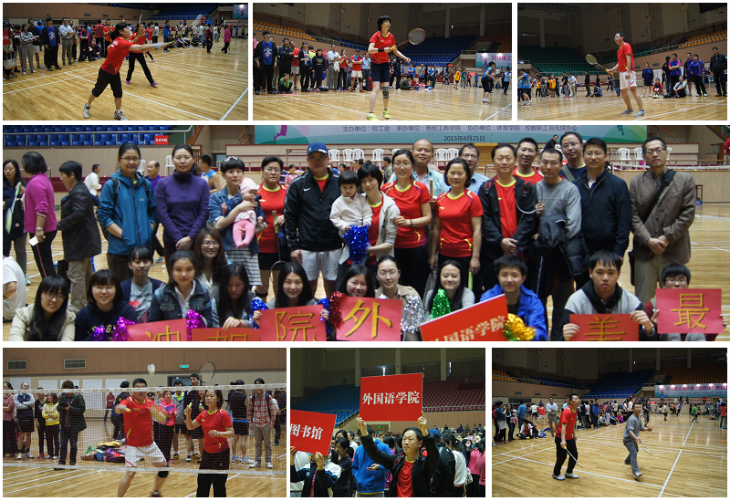 公司羽毛球队员郑醒芝、张岚、苗福光、万华、董永杰、范金萍、白静远、王国建、雷远旻、韩璐璐、张新玲积极备战。由周平经理和王国建副书记、公司员工、教职工及家属组成的强大啦啦队,高举看板和彩带,齐声呐喊,加油助威。赛场上公司羽毛球健儿们,英姿飒爽,一场一场拼,一轮一轮的搏,向全校展现了外语公司教职工的风采和精神面貌。