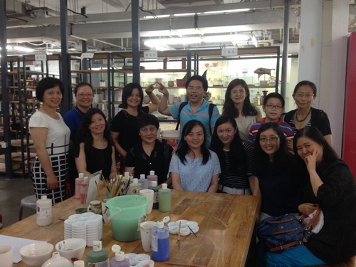 会议的前半部分在上海公共艺术中心,每位教师都为自己的瓷杯作画,并参观展览和自己试着制作瓷器。