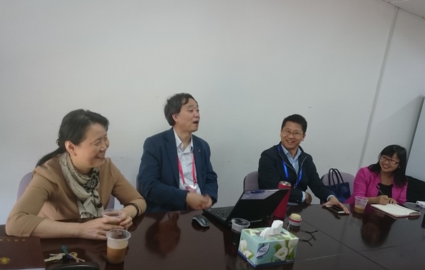 在座谈会上,于教授直奔主题,询问公司大学英语教学以及学术英语教学在公司的开展情况。施雯教授汇报了公司大学英语的分级教学以及升降级制度;戴朝晖副教授对升降级的具体操作机制进行了详细说明;唐青叶教授介绍了英语系教师在走进社区、指导课外实践等方面取得的成绩;梅文胜博士谈到自己对于学术英语教学的看法,获得于教授的认同,与会教师就此展开了热烈的讨论。