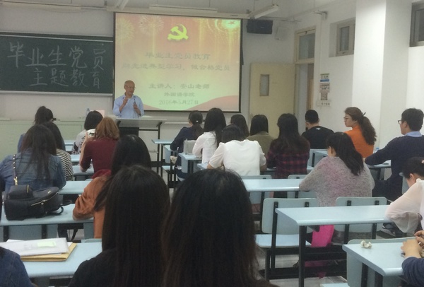 报告中,安山老师结合"两学一做"的基本要求,用生动典型的事例,在怎样适应社会需要、做一名合格党员等方面进行谆谆教导。如,通过对邓小平同志一生的三起三落等经典案例分析,安老师指出正是因为邓小平深爱祖国和人民,有正确的政治信仰,才能在政治的大浪潮中乘风破浪,坚定理想信念,坚守自己的阵地。安山老师还提出三个要求:希望全体毕业生党员,加强党性修养,提高党员意识;希望全体党员必须坚持党的宗旨,全心全意为人民服务;希望全体党员严守党的规矩,遵守党的纪律。安老师尤其强调了党纪党规。通过解读《中国共产党廉洁自律准则》和《中国共产党纪律处分条例》,结合陕西吕梁副市长贪污等典型案例,安老师告诫在座党员应当严守党的纪律,保守党的秘密,做讲规矩、有纪律的共产党员。