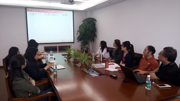 冯奇教授首先谈到这次讲座的选题源于自己讲授"中国典籍外译"课程的感悟,并分别提出了该话题的翻译理论背景和语言理论背景:即在翻译的"对应论"和"顺应论"之间,以及语言学的"sense"和"reference"之间寻求对立统一。冯教授指出,"对应"是在源语和译语之间划等号,而"顺应"是在二者之间划不等号,要想达到更高层次的对等,此时需要用"趋近"理论平衡。另外,他提出了文化身份与典籍外译的现实背景:要想讲好中国故事,首先故事本身得是真实的,其次讲述的方式需要通顺和易于接受,典籍翻译一定要把握好这个原则,这样才能将中国文化正确地向世界传播。冯教授还指出,文化身份的获得途径是通过译者在源语与译语之间寻求平衡。接着,冯教授引入正题,对《庄子》以及《庄子》的英译做了简要介绍。随后,冯教授提到了《庄子》中诸多文化概念的翻译,例如"道"、"一"、"阴阳"、"齐物论"、"彭祖"和"鲲鹏"等的英译,通过翔实的例子和生动的解读对在座的师生讲述了这些难以翻译的文化概念该如何进行恰当翻译。之后,冯教授解读了"因是因非,因非因是"这样的特色句子的翻译方法。最后,在结语中,冯奇教授指出忠实于原文是讲好中国故事的铁定原则,但是保留和传递民族身份很难全方位实现,此时用"趋近"原则最好不过,该观点得到了现场师生的一致认可。