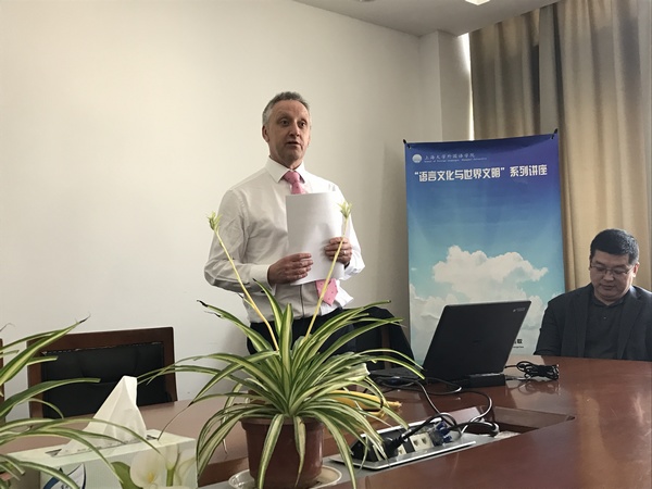 Sean Holmes教授与福尔摩斯姓氏相同,他在打趣了自己的姓氏之后,展开对神探福尔摩斯的解析。福尔摩斯是一种文化标志,在全世界拥有成百万的书迷和影迷。据吉尼斯世界纪录统计,他是出现在屏幕上次数最多的小说人物之一。Holmes教授探究了不同历史时期福尔摩斯在电影和电视剧中的不同形象,并分析了故事创作和影视改编的社会背景和伦敦都市在影视剧中的不同风情。在讨论交流环节,Holmes教授同在座师生探讨了影视剧改编的政治正确问题、福尔摩斯在中国的接受情况等,讨论热烈,精彩纷呈。