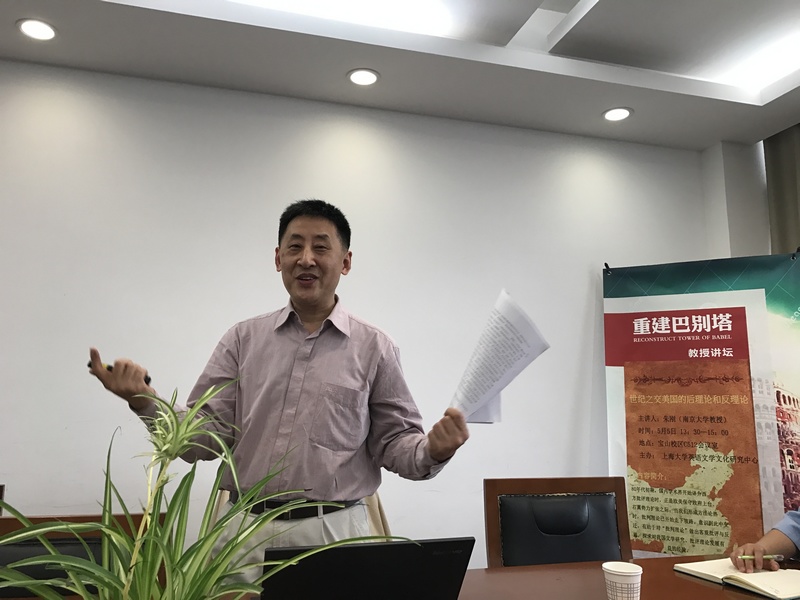 朱刚教授以其开阔的学术视野和丰富的学术史知识复原了后理论与反理论所依托的鲜活的时代图景,辨析了理论的渊源、宗旨、其针对的问题与所回应的社会现实。讲座最后,朱教授与在场的老师同学进行了热烈讨论,耐心细致地回答了大家的疑惑。朱刚教授在演讲中神采飞扬、谈吐温文尔雅,富于机锋,其大家风范令在座的师生钦佩不已,讲座在热烈的气氛中结束。
