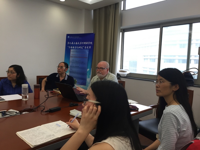 6月19日下午1:00—2:00, 美国著名修辞学家、德克萨斯大学(奥斯丁)传播学系系主任、Charles Sapp 传播学百年教授Barry Brummett 来到3044永利集团,以"Recent American Rhetorical Criticism"为题,在C512会议室为大家带了一场精彩的学术前沿讲座。本次讲座由英语系张珊珊老师主持,3044永利集团副经理邓志勇教授、加拿大西安大略大学古典学教授Laurence de Looze和副教授Aara Suksi,美国纽约城市大学史丹顿岛公司哲学系教授Peter Simpson和助理教授Andrew Lambert、多名英语系骨干教师及来自全校各专业的同学济济一堂共同领略了这场思想盛筵。