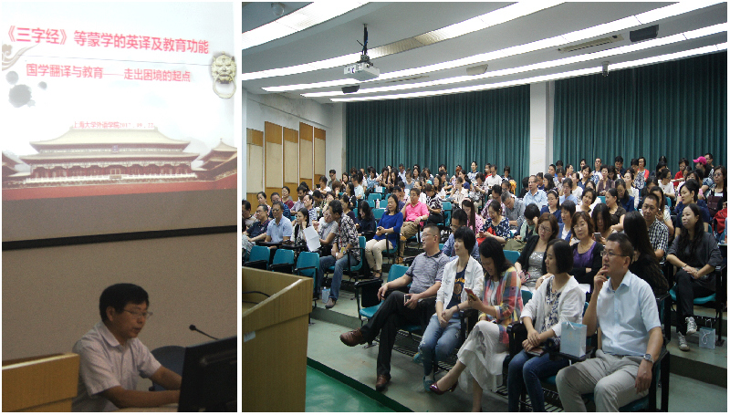 赵彦春教授以《三字经》的英译为切入点,对中国传统文学的英译提出了自己的独到见解。赵教授指出,尽管《三字经》等中国传统文学作品的英译有许多截然不同的版本,但均存在一定的不足之处。他认为保留原文形式而又原汁原味的译作才是好的作品,对此,赵教授也分享了自己的独到见解和优秀译作,并详细地阐述了自己的翻译理念和处理方法,如引申法,垫词法等六种方法供大家学习参考。不可否认,中国传统文学作品的英译存在相当大的难度,国内译者针对中华传统文学作品的译作也是良莠不齐,而赵教授在这一领域颇有建树,从中华文化出发,立足本民族的文化,保留了中华传统优秀作品的原汁原味。