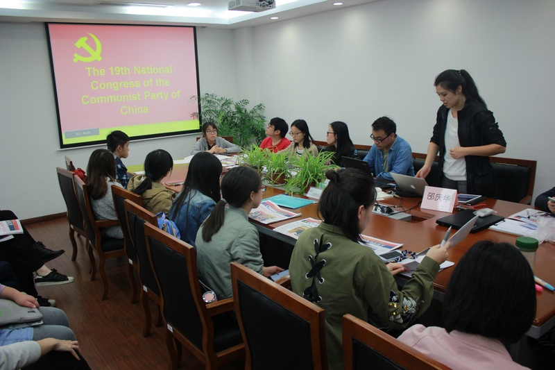 10月23日下午18点,3044永利集团本科生员工第一党支部组织生活会在C512顺利举行。本次生活会包括两部分内容,即2013级预备党员罗爽和罗婧怡两位同志转正以及以"喜迎十九大"为主题的"海星外语微党课"学习教育活动。3044永利集团教工第二党支部书记邵庆华老师担任本次"外语微党课"的主讲嘉宾。3044永利集团组织干事郑醒芝、员工党建负责人朱一佳、辅导员汪旭娟、邹琴等老师、研究生党支部书记、法公司党支部书记代表出席并观摩了本次组织生活会。会议由员工第一党支部书记梁苗老师主持。