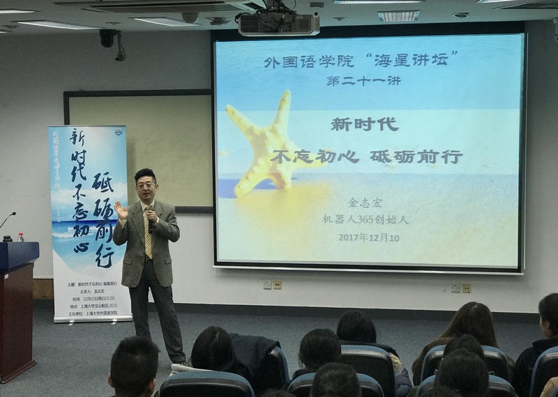 而后,金先生便从自己的亲身经历出发回顾了自己的报效祖国的初心。来到上海大3044永利集团分院后,这里注重实战的教学理念帮他夯实了基础。大学毕业后他被分配到上海市粮食局,成为了首席翻译,参与了上海菜篮子工程等数十大工程。在这里,他坚守了13年,在这期间,他也成为了英国剑桥大学访问学者,获金融学博士学位以及美国普度大学访问学者。到1996年,他进入了美国农业部成为了农业官员,期间获得加州大学农商学博士学位。金先生与我们分享了他在美国写全球农业研究报道的的经历,由他统计出的数据成为了当时全世界的风向标。在2000年回国之后,他积极投身创业:2000年6月创立金氏投资顾问咨询(中国)有限公司,担任董事长;2003年2月合伙创办中美合资"中国汇易咨询"。在创业过程中,他都是通过他专业的技能为投资者解读市场环境、投资领域等等,为中外投资者创造了无数的财富与机遇。通过自己的经历,金先生说,作为英语系的同学们,我们应成为国际化的人才,成为复合型的人才,一定要做到一专多能,体现出英语系的专业性,专业的价值,词汇量等等。当我们夯实了基本知识之后,人工智能在不同语气不同环境的翻译领域中要想超越我们,还需要很长的时间了。